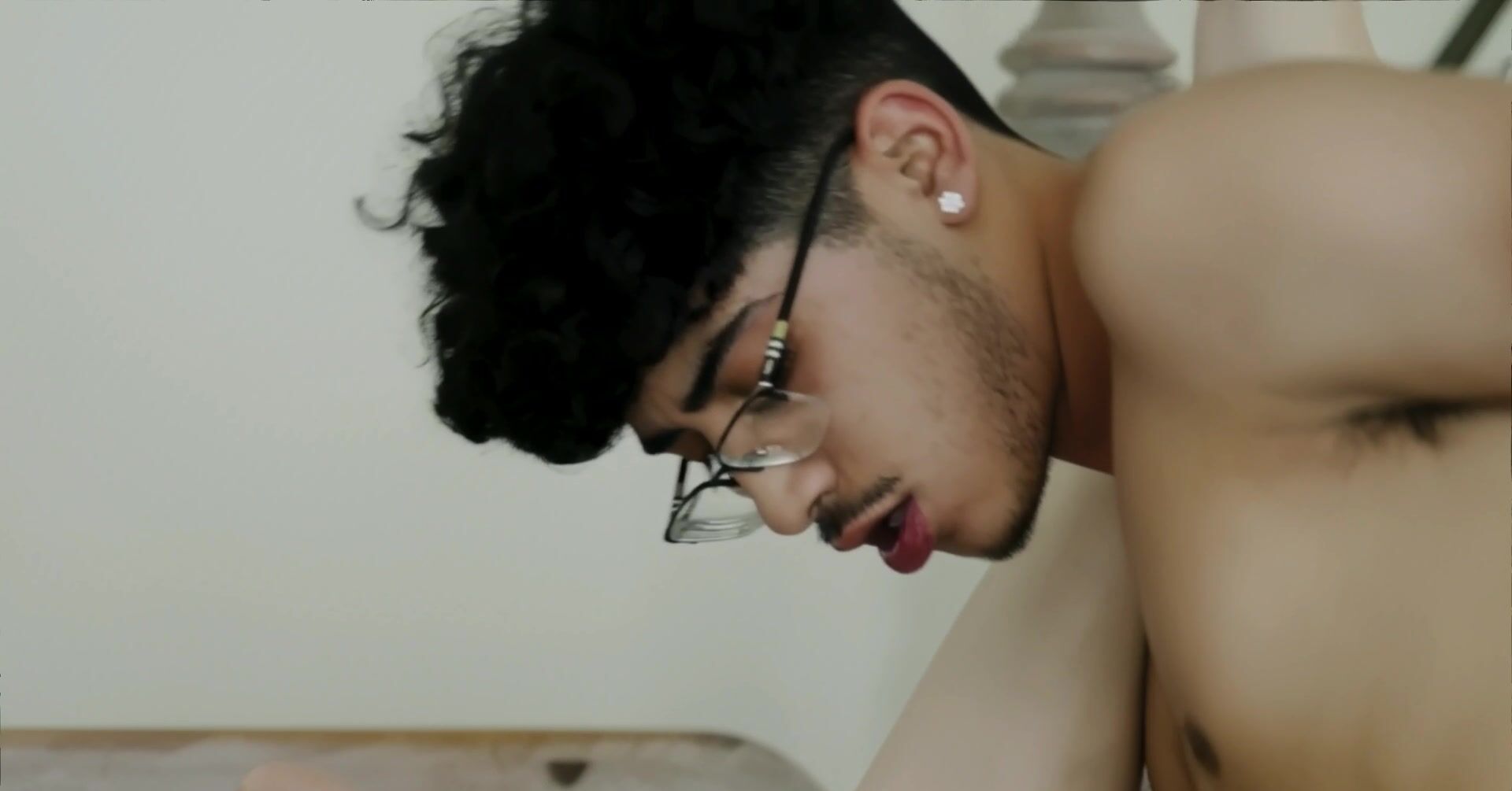 Неопытный пацан в очках трахает мачеху после ванны