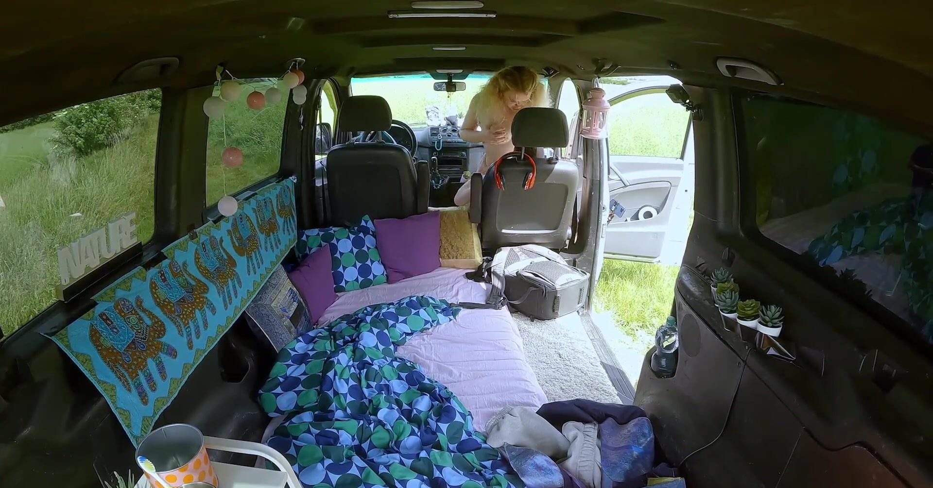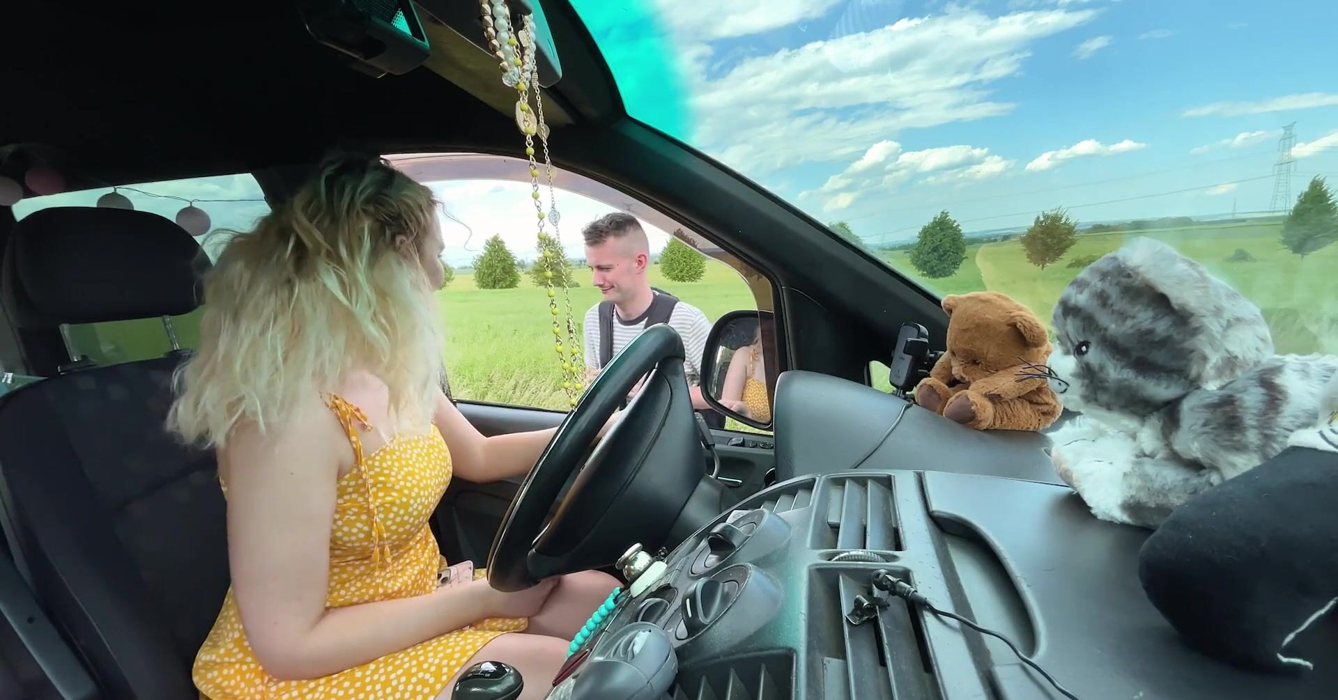 Милая туристка на природе трахается с незнакомым парнем в фургоне