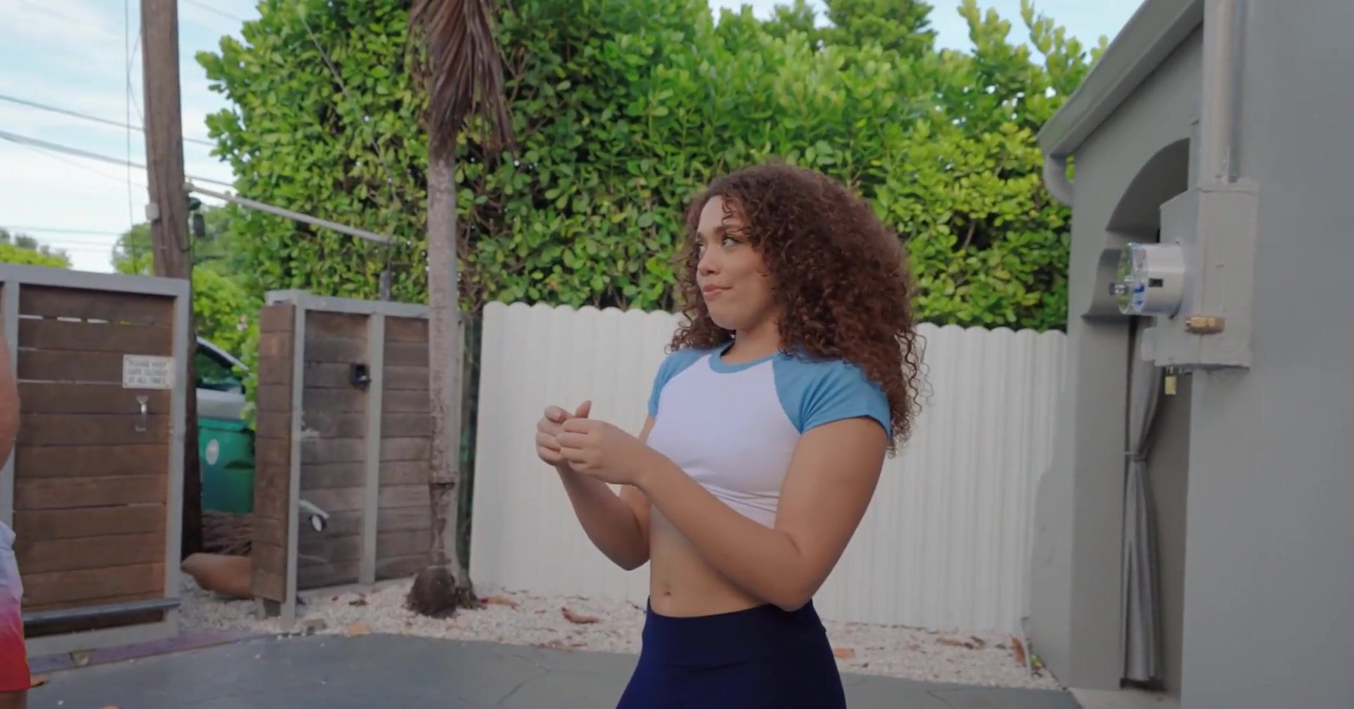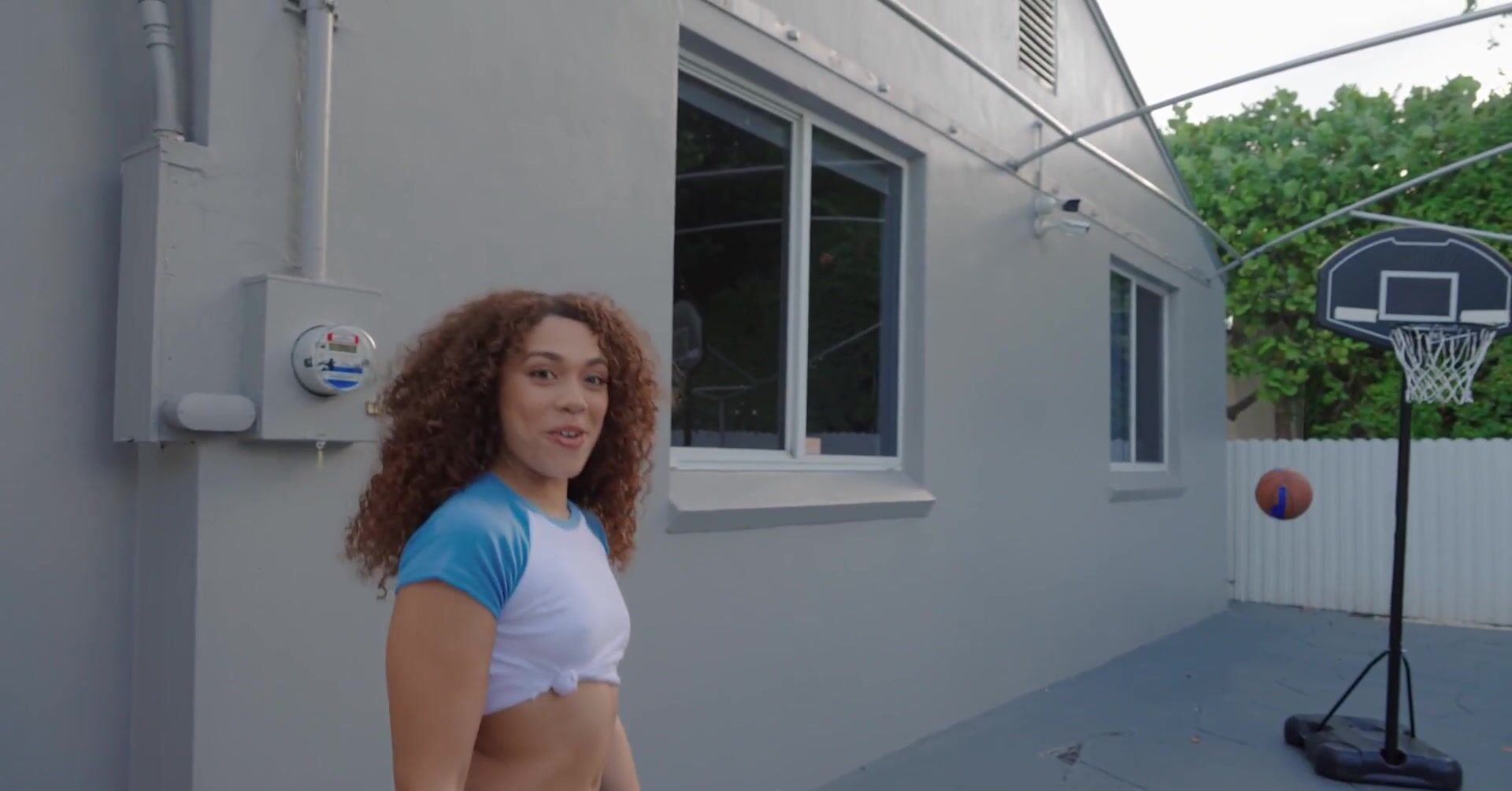 «Кудрявая мулатка заигрывает с приятелем, который играл в баскетбол во дворе. Она намекает на интим и ведет его в спальню, чтобы там заняться сексом. Жаркая крошка с сочной попкой начинает с минета, изначально она заглатывает толстый хер и как следует его полирует, а потом уже отдается в пизду. Её щелка становится нереально мокрой, девчонка не на шутку возбуждается. Она наслаждается еблей и получает сперму на лицо.»