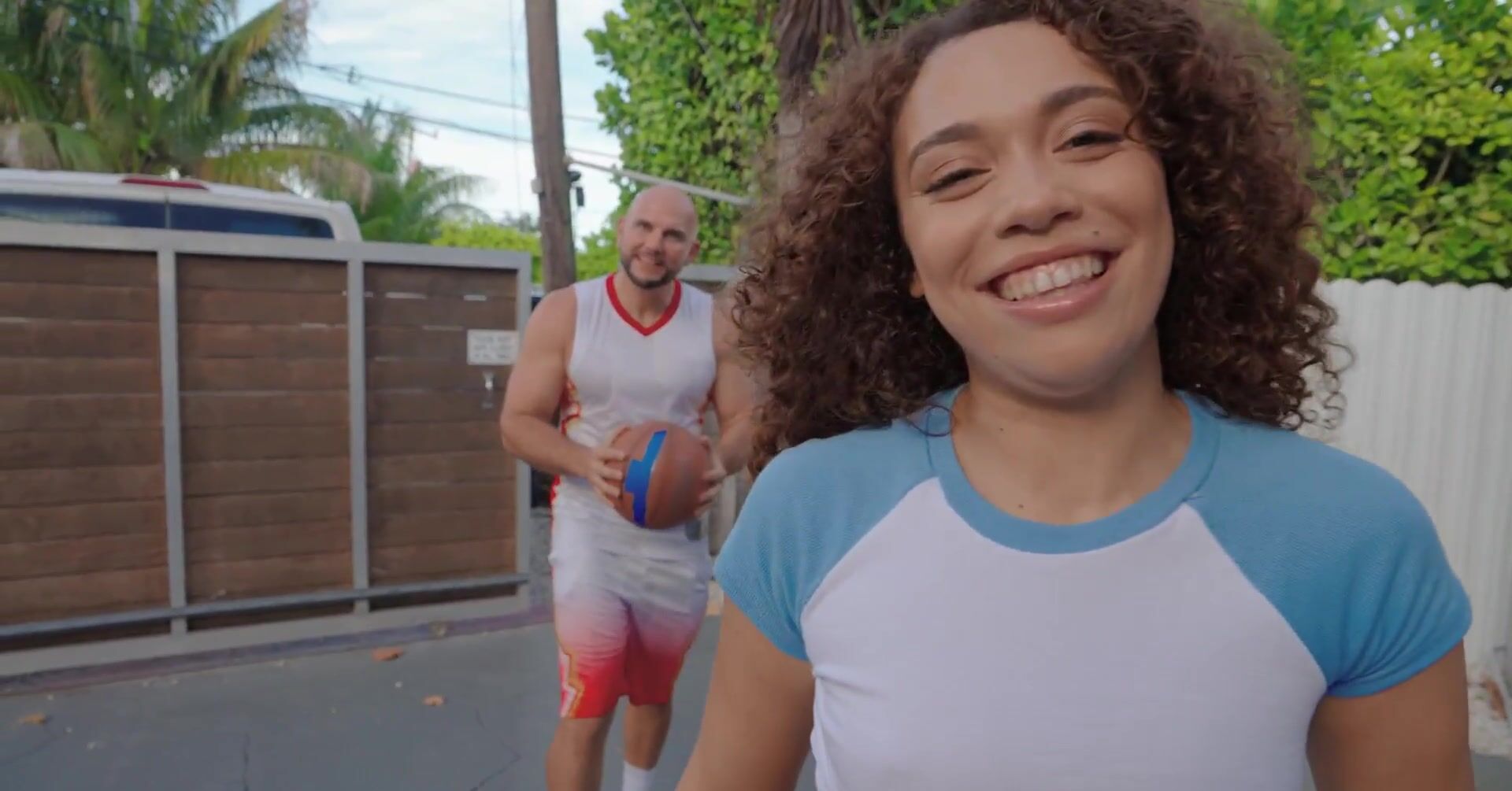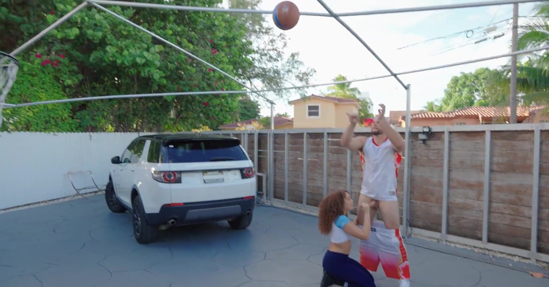 Мужик после игры в баскетбол страстно ебет кудрявую мулатку