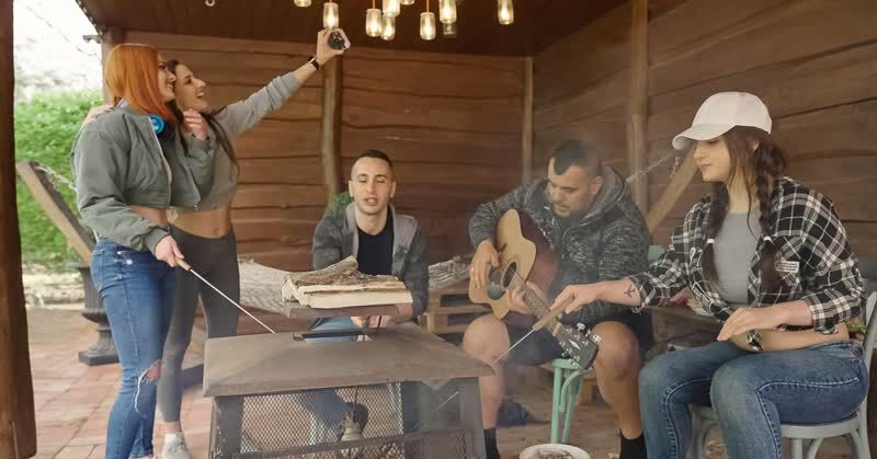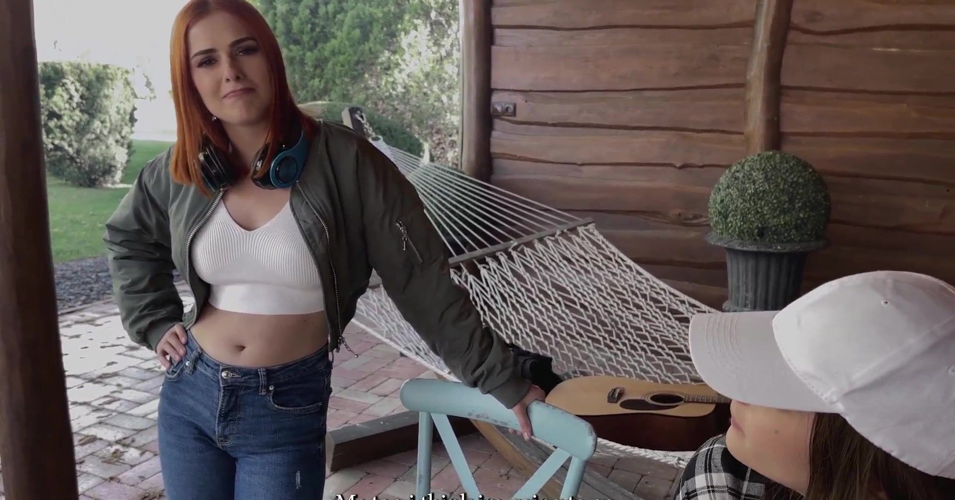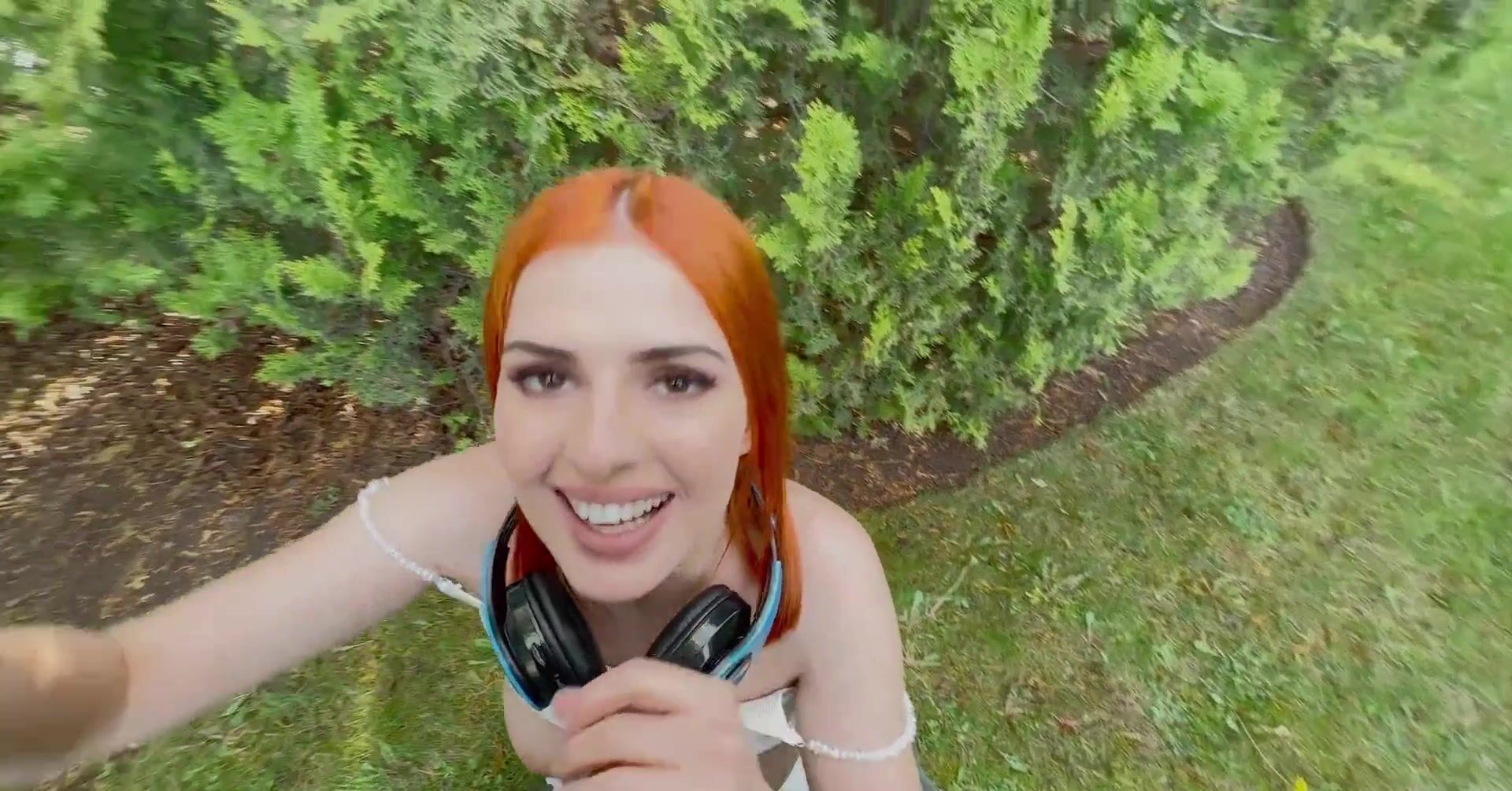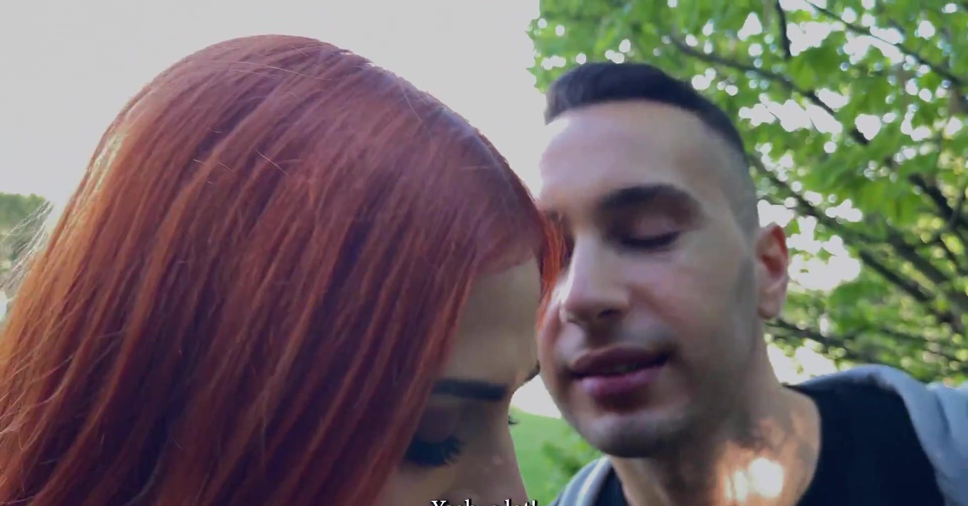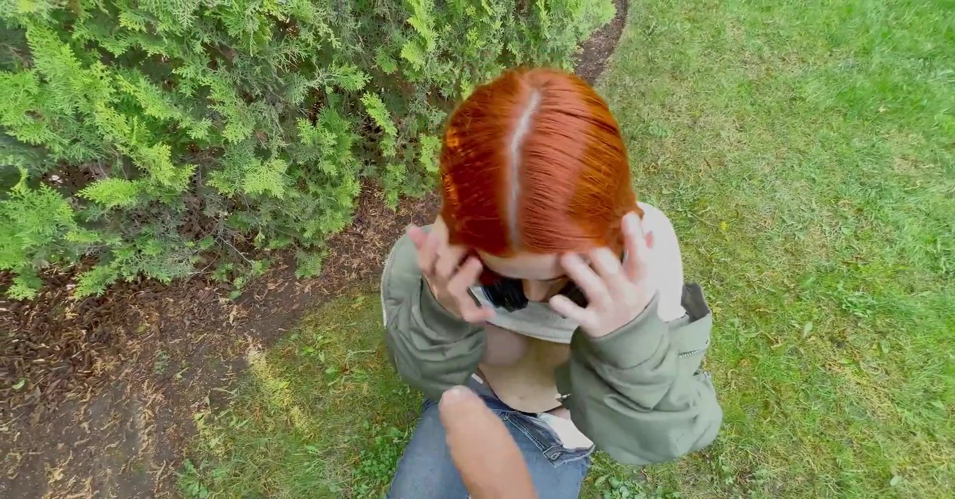 «Рыжая телка на даче во время посиделок с друзьями уединяется с одним приятелем, с которым она захотела заняться сексом. Привлекательная девчонка с сочной попой и силиконовыми сиськами быстро соблазняет его на интим и под кустом принимается по-быстрому отсасывать толстый хер. Далее развратница уже вскоре раком и отдается в бритую пизду. Кончить же пацан может ей на лицо, испачкав спермой высунутый язык.»