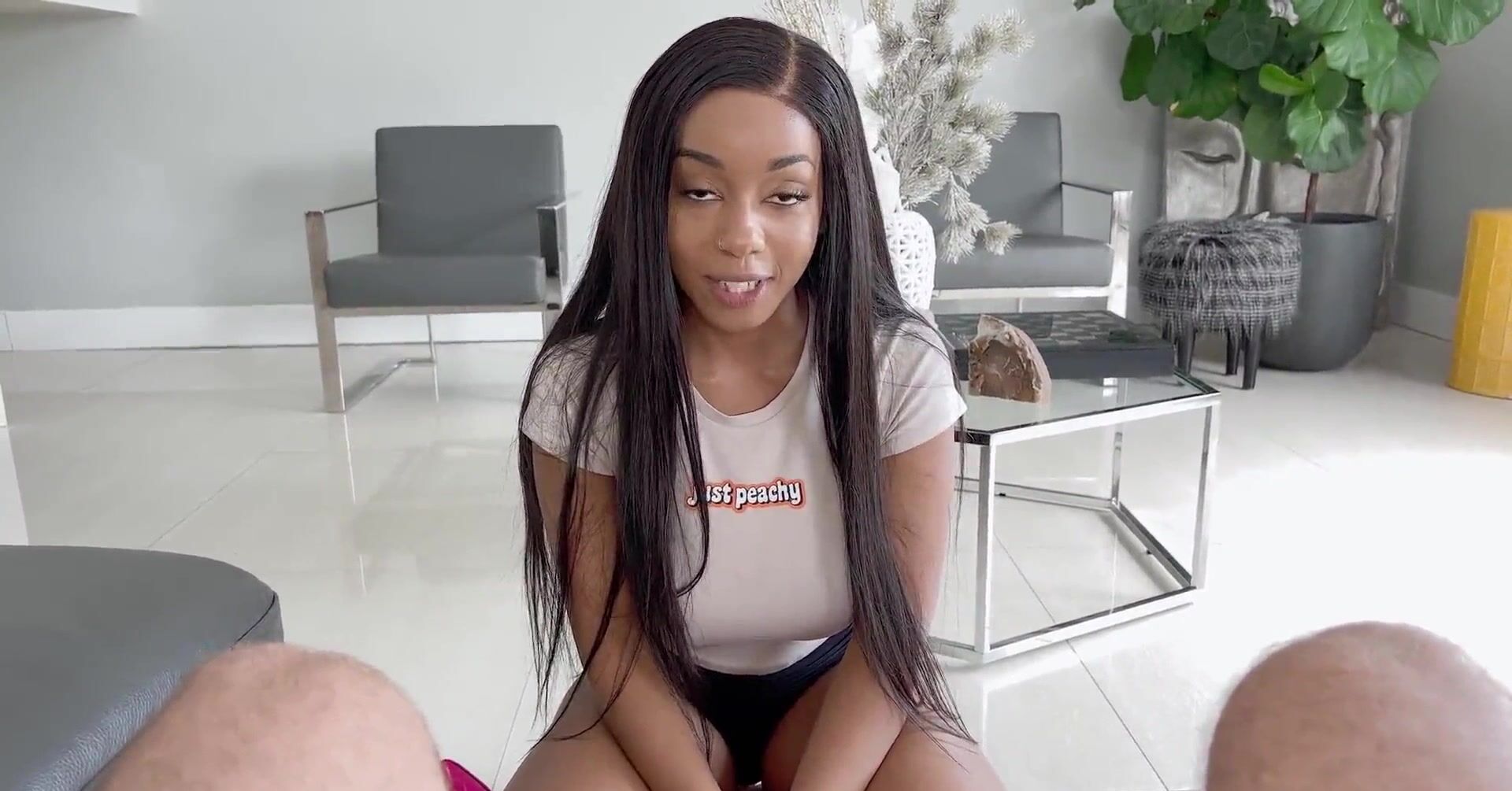 «Привлекательная негритянка очень хочет научиться делать минет. Изначально тренируется она на огурце, а потом на баклажане, но это всё не то. Приходится попросить друга, чтобы тот её угостил своим членом. Черноволосая девчонка берет белый хуй в ротик и начинает его сосать. Получается у девчонки очень даже неплохо, и не скажешь, что она новичок в этом деле. Одними оральными ласками дело не обходится, девчонка ещё и в пизду отдается.»
