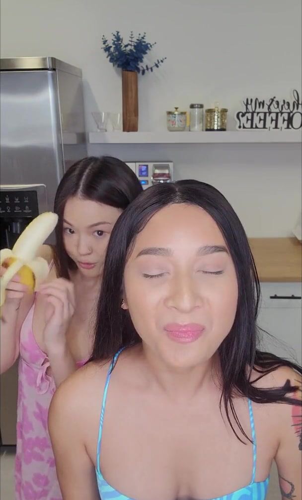 «Веселые подруги снимают тиктоки. Одна телка обязана угадать продукт по вкусу. Изначально азиатка дает ей облизать мороженное, а потом морковку, после чего просит приятеля достать свой член, который тот подносит девке ко рту. Игривая цыпочка сразу понимает, что это такие и берется смачно сосать фаллос. Съемка тиктоков заканчивается жарким сексом втроем. Пацан теперь трахается азиатку и её жаркую подружку.»