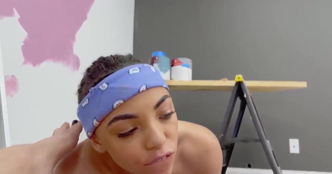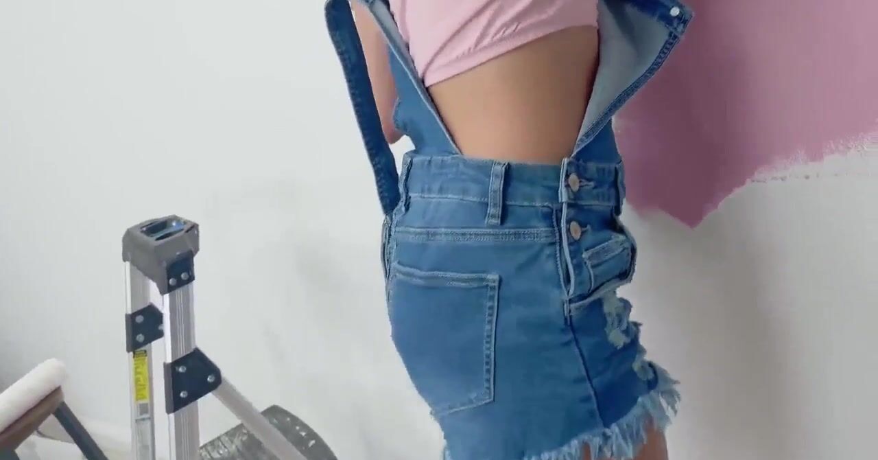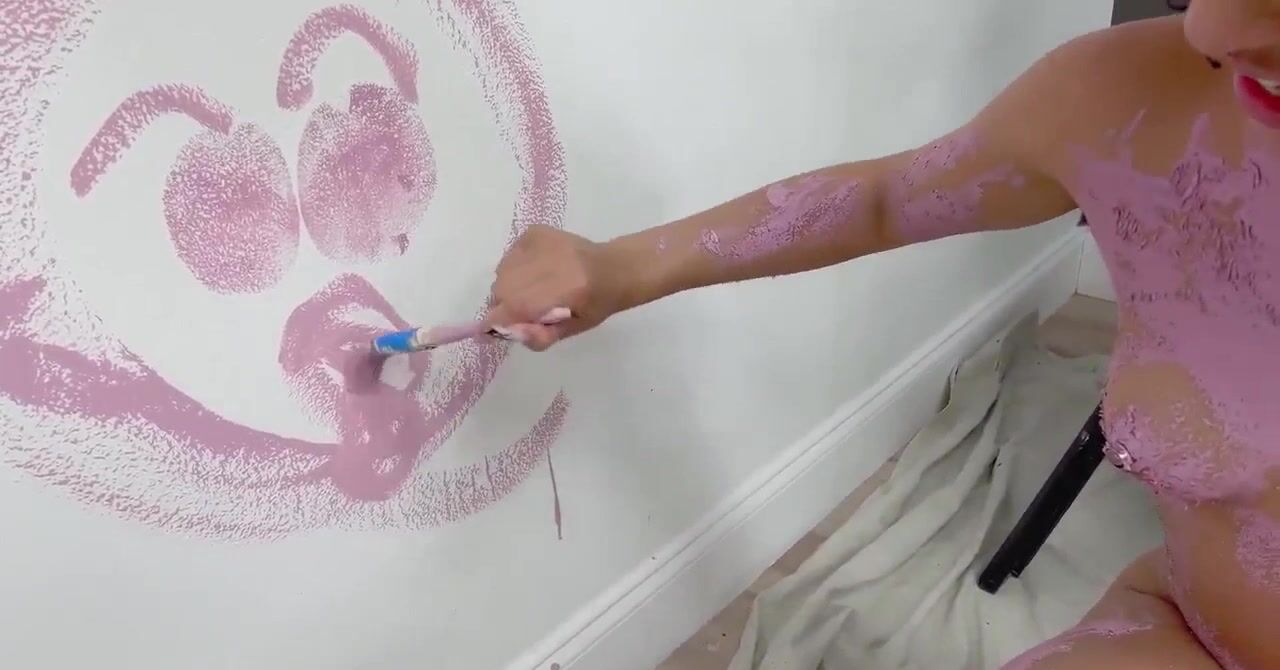 «Подружки делают ремонт и красят стены в комнате. Одной из них захотелось покрасить подругу, она посчитала это забавным. Девка так и сделала, испачкала тело и одежду подруги краской, но шутка быстро вышла из-под контроля, две цыпочки не на шутку возбудились. Пришлось отвлекаться от ремонта и заниматься лесбийским сексом. Одна крошка расставила ноги второй на полу и принялась смачно вылизывать её пизду.»