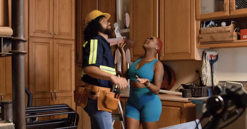 Лысая негритянка с сочным телом трахается с негром на кухне