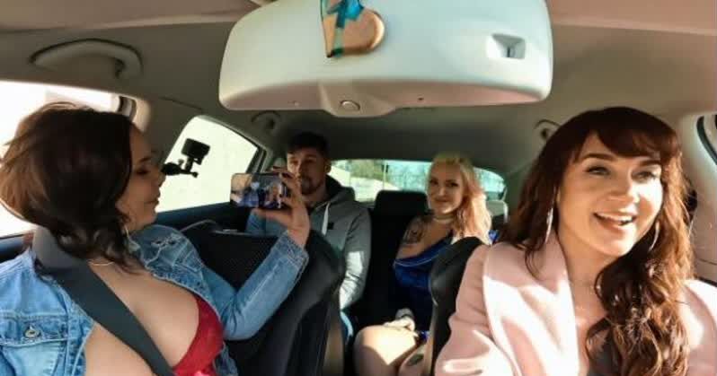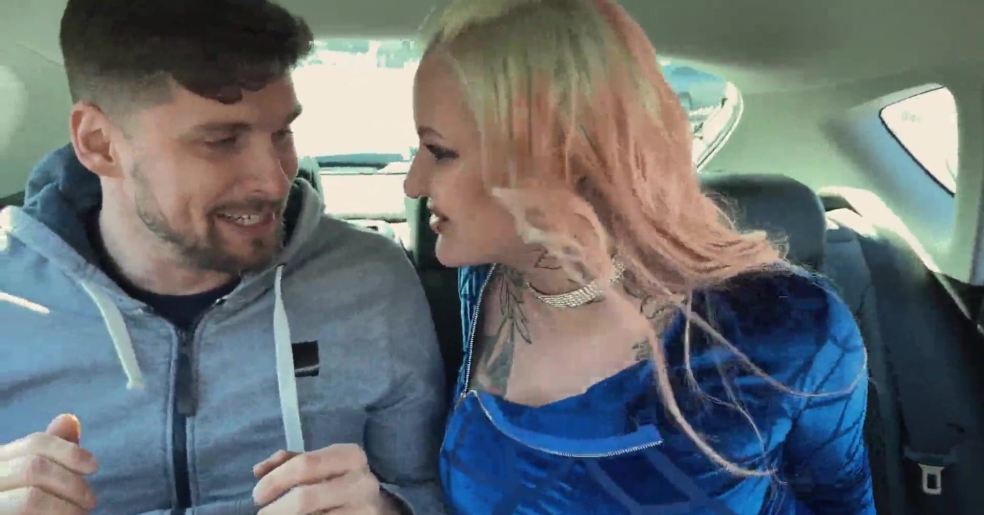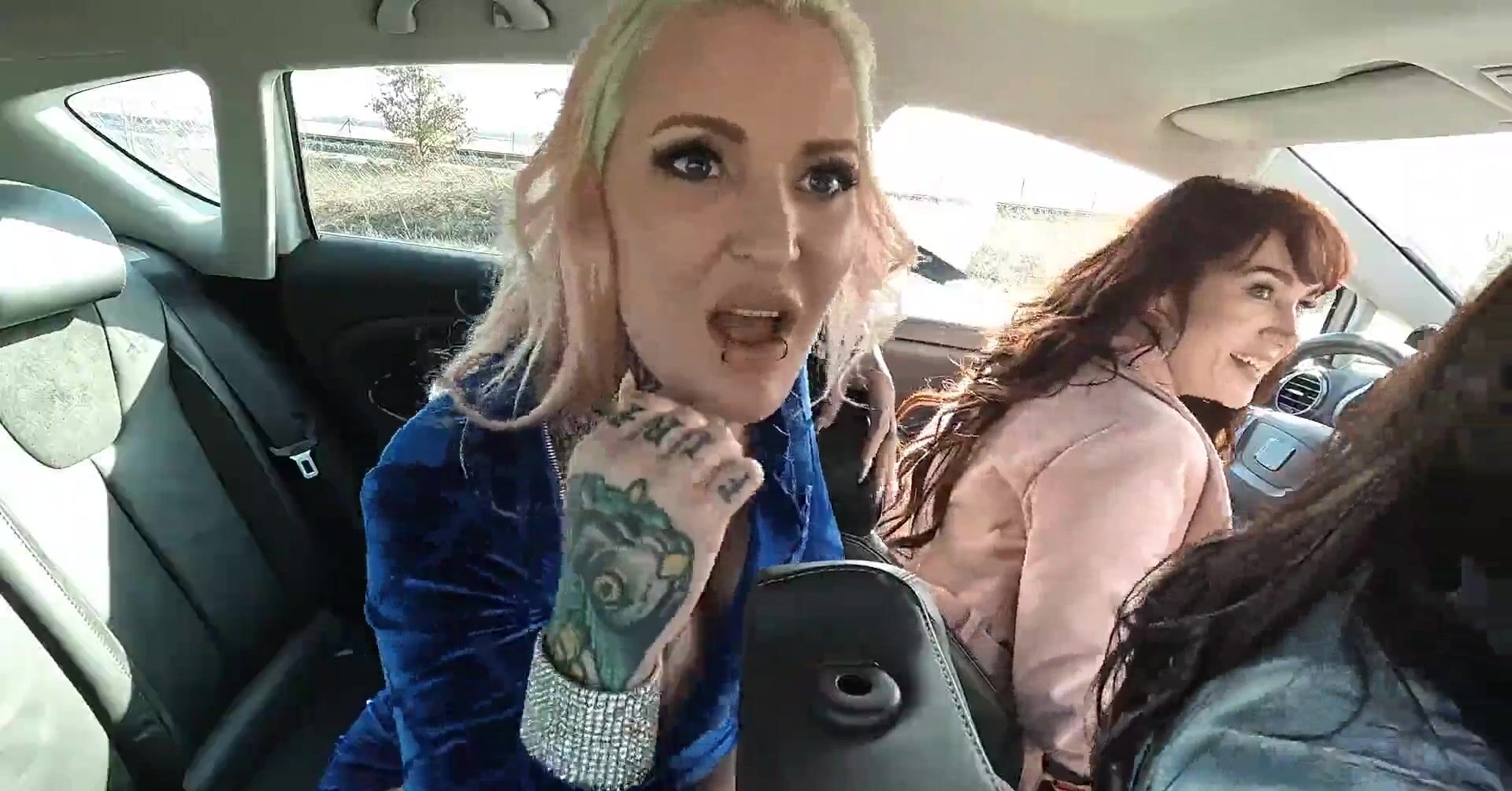 «Подруги путешествуют на машине и татуированная блондинка во время поездки заявляет, что ей ужасно хочется ебаться. Возле дороги как раз стоит парень, которого девки решают подвезти. Белокурая же развратница соблазнила его на секс и стала на заднем сидении отсасывать член незнакомца. Далее авто остановилось и трахаться она продолжила уже на природе. Мужик поимел её на капоте и спустил сперму в пизду.»