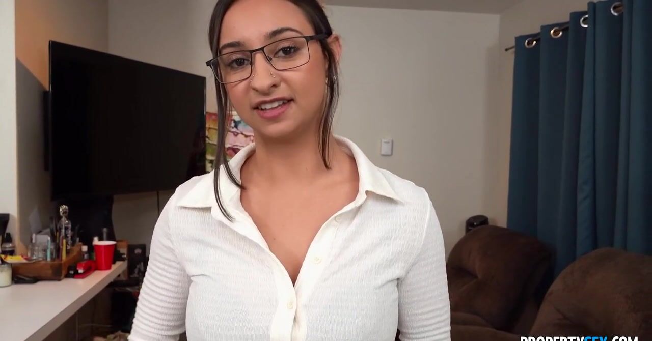 «Милая девушка работает риэлтором и проводит экскурсию по квартире, которую хочет снять мужик. Он соглашается снять жилье, но только с одним условием, привлекательная телка с большими натуральными сиськами должна заняться с ним сексом. Такое предложение вполне устраивает девчонку, она соглашается его удовлетворить. Крошка показывает дойки и раздевается полностью, а потом принимается сосать и ебаться.»