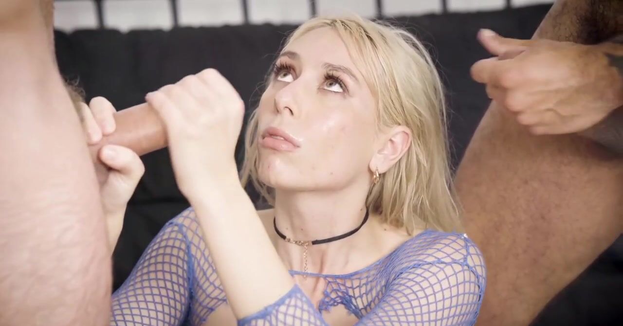 Блондинка Kay Lovely в сетке трахается с толпой парней
