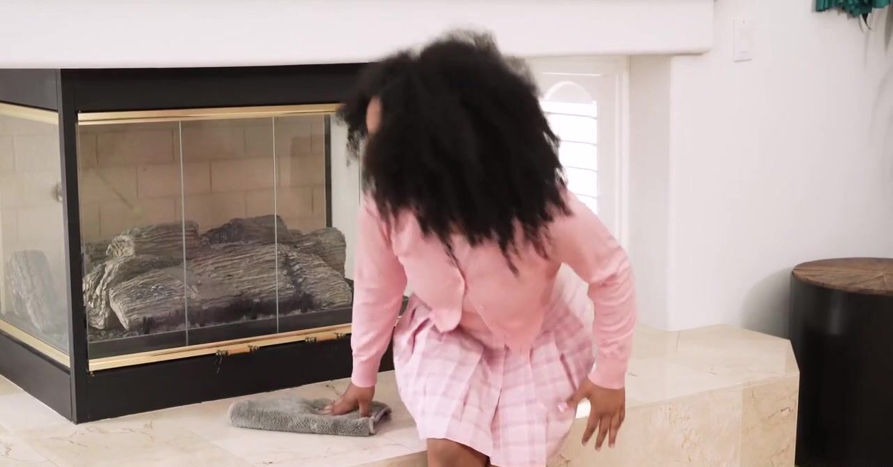 Милая негритянка с кудрявыми волосами соблазняет на секс