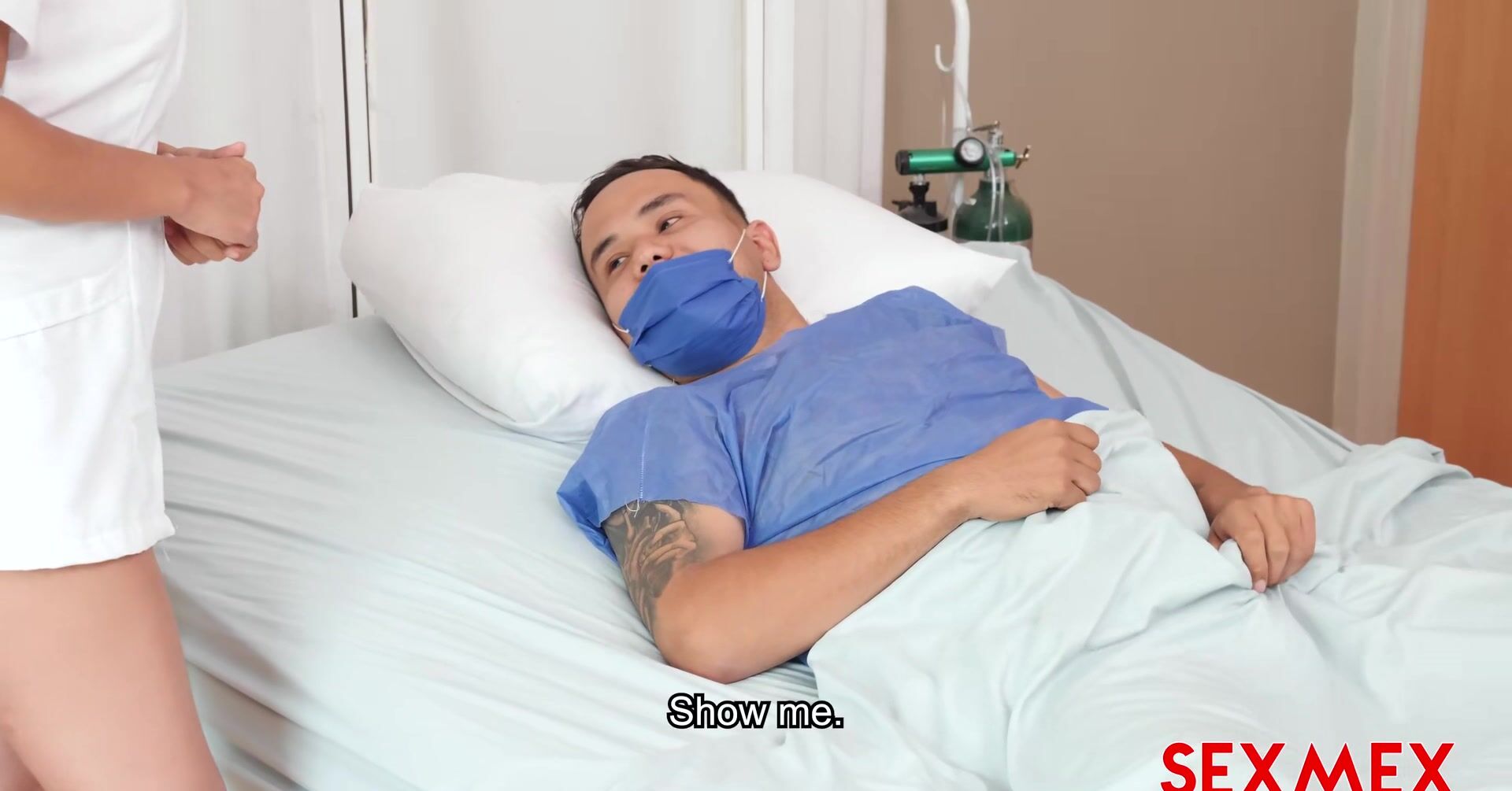 «Латинская медсестр смиловалась над пациентом, который ужасно захотел заняться сексом. Он лежал в больнице уже несколько недель и за это время у него не было интима. Поэтому медицинская работница осталась с ним наедине и удовлетворила самца. Она взялась делать ему смачный минет, а потом села на член, чтобы трахнуться в позе наездницы. Парочка занялась страстным сексом, который закончился вагинальным кремпаем.»