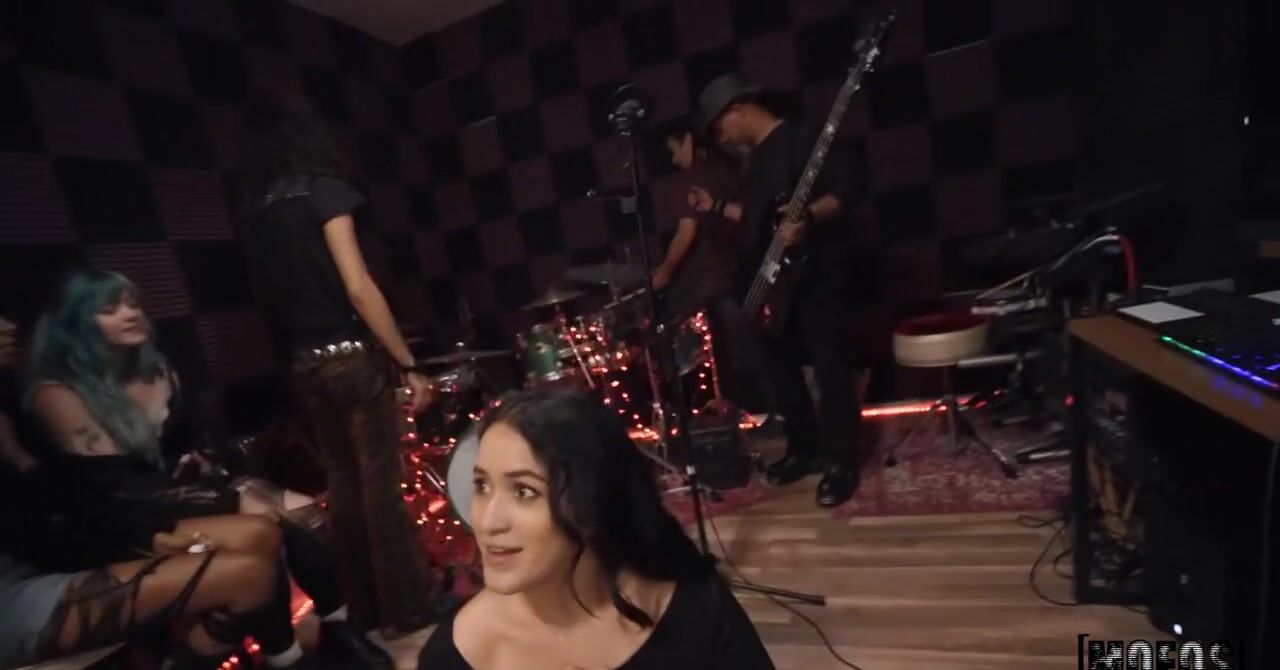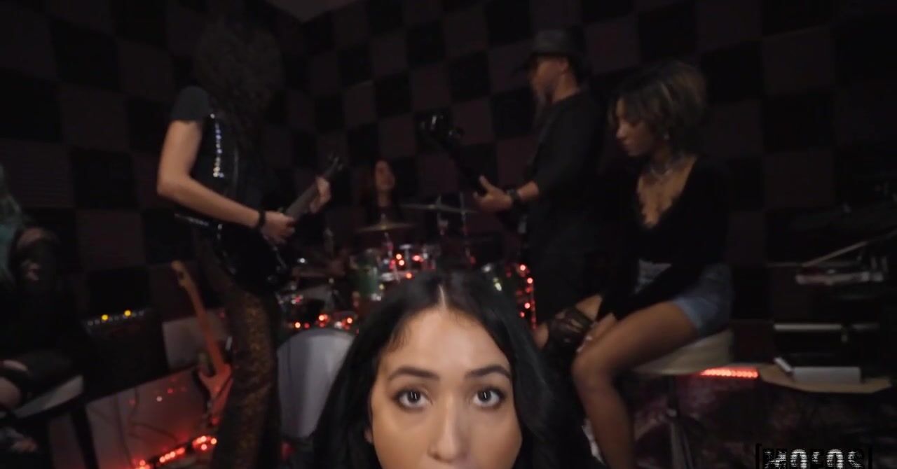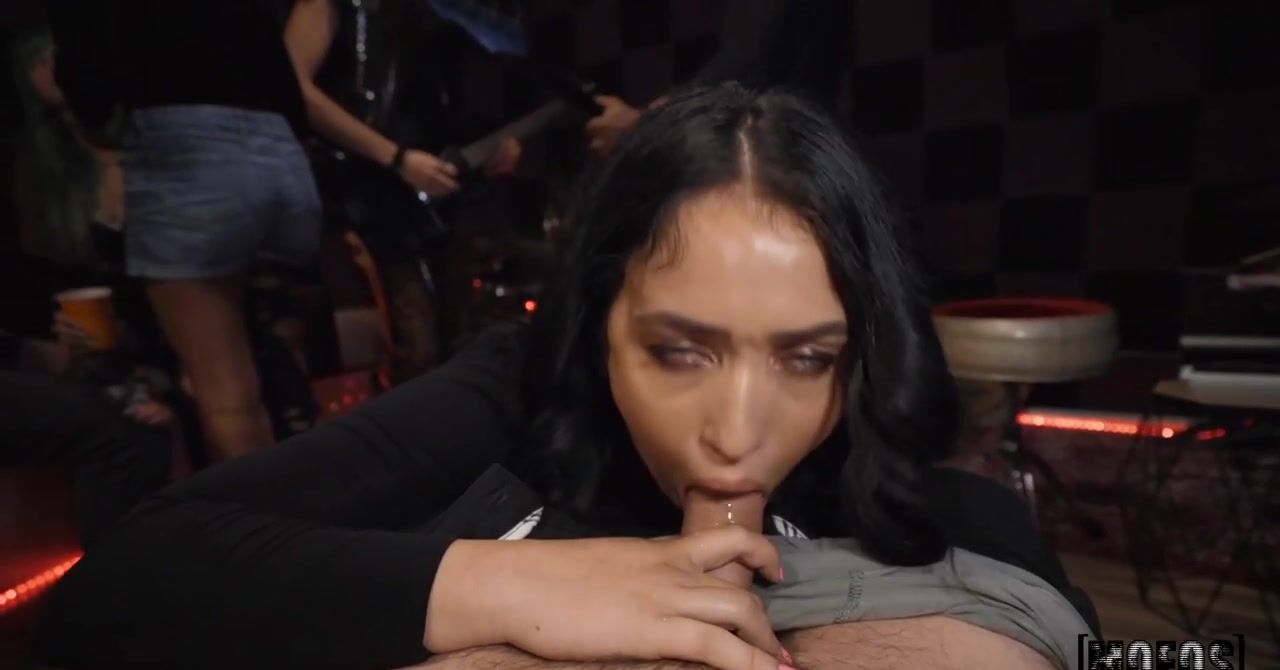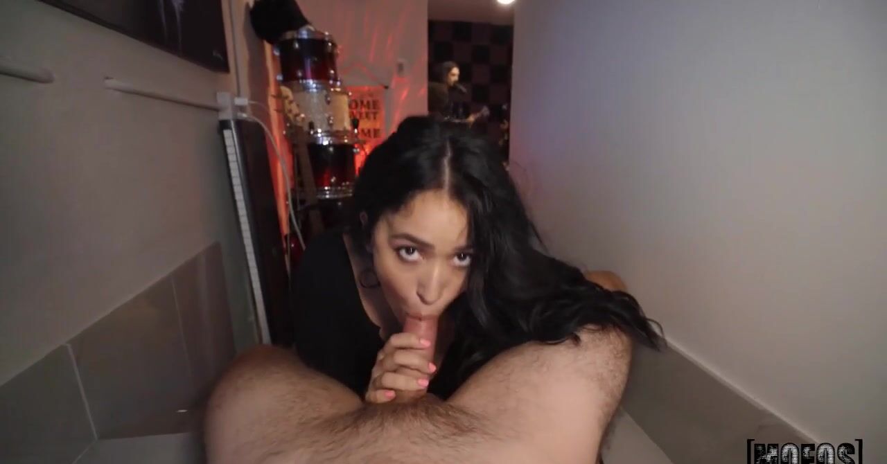 «Жопастая фанатка попадает на репетицию любимой группы и соблазняет солиста на секс. Черноволосая цыпочка с большой попой и сиськами опускается перед ними на колени, чтобы сделать минет. Пока вся остальная группа репетирует, эта жаркая сучка отсасывает его ствол. На этом бестия не останавливается, она ещё и в пизду отдается. Девчонка насаживается киской на фаллос и активно скачет, получая удовольствие.»