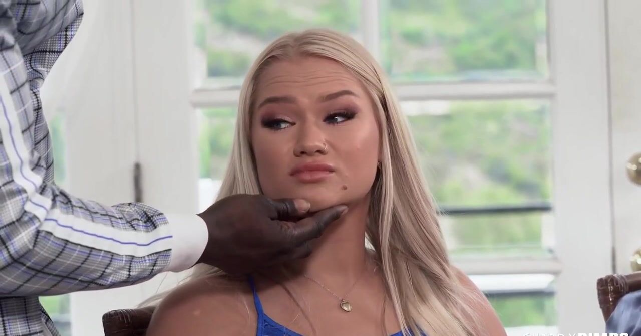 «Чернокожий коллектор приехал выбивать долги и поимел белокурую женушку должника. Он связал мужика и заставил его смотреть на измену супруги с большой задницей. Похоже, что благоверной безумно понравилось ебаться с негром, она очень страстно отсосала его крепкий фаллос, а после минета отдалась уже в пизденку, наслаждаясь половым актом. Ненасытная сучка забыла о муже, она наслаждалась изменой и не обращала на него внимание.»