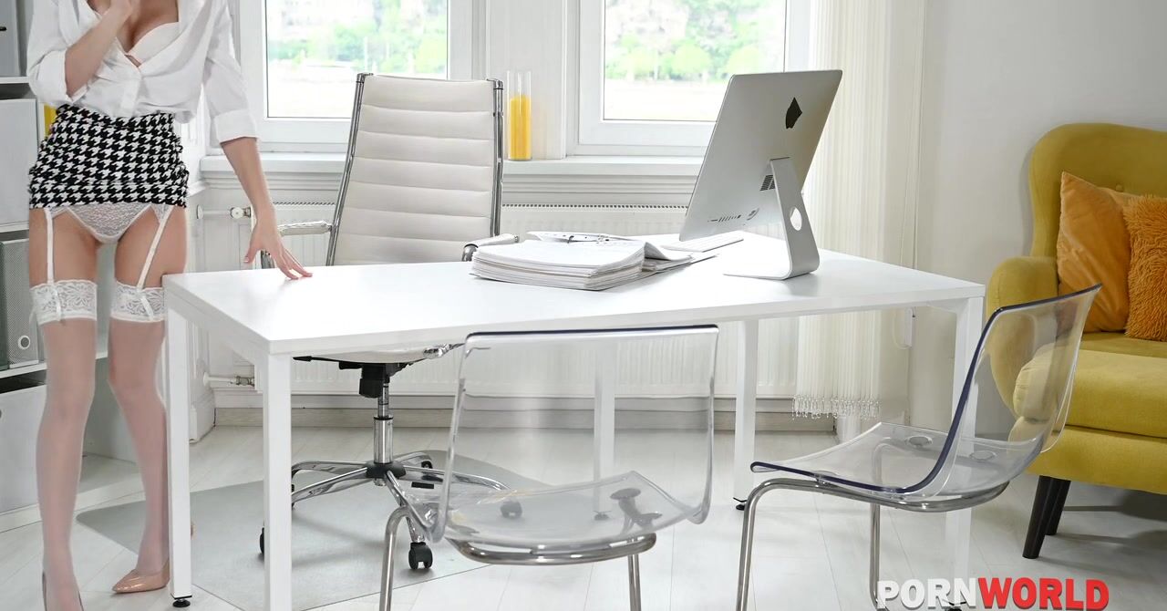 Красотка хотела подрочить на работе, но занялась сексом с боссом
