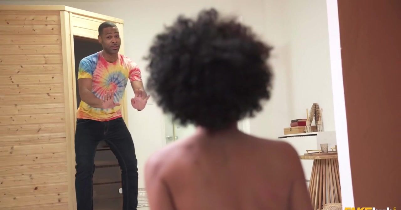 «Кудрявая негритянка что только не делала, чтобы соблазнить приятеля на секс. Она застревала в стиральной машине и просила застегнуть молнию на спине, но ничего не помогало, тот стеснялся и уходил. Только когда стройная цыпочка разделась полностью и показала своё упругое тело тот не удержался и накинулся на неё, принявшись вылизывать бритую киску. Теперь девчонка уже смогла насладиться его большим черным членом.»