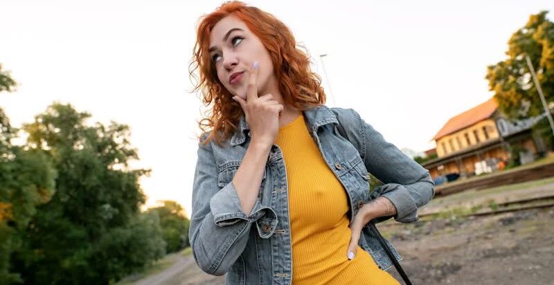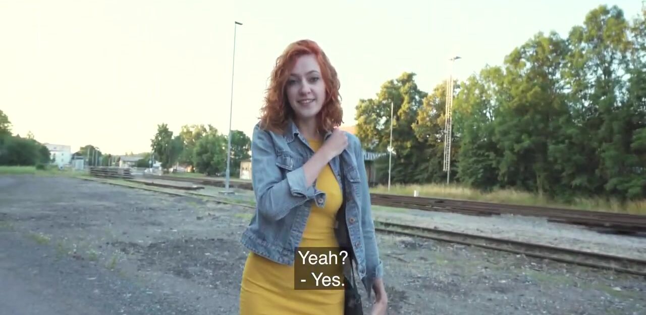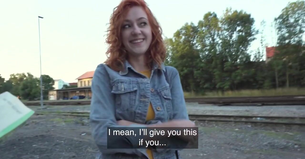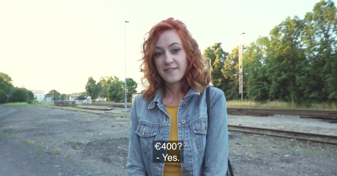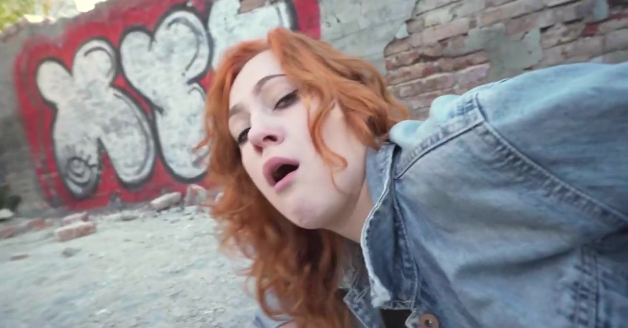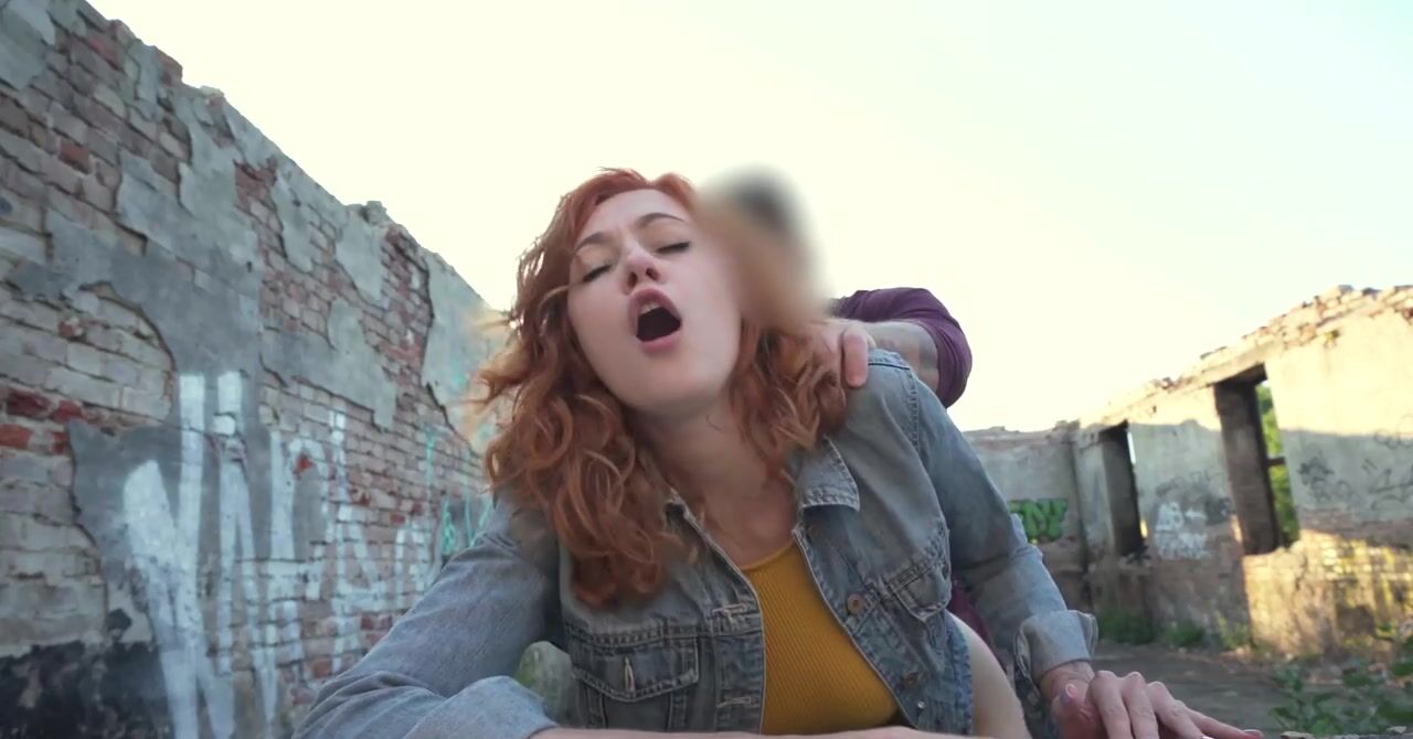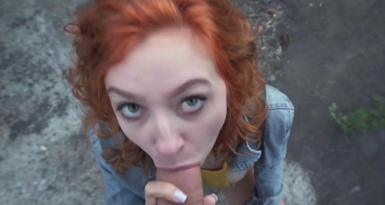 Пикапер трахает за деньги рыжую телку на улице и в чулане