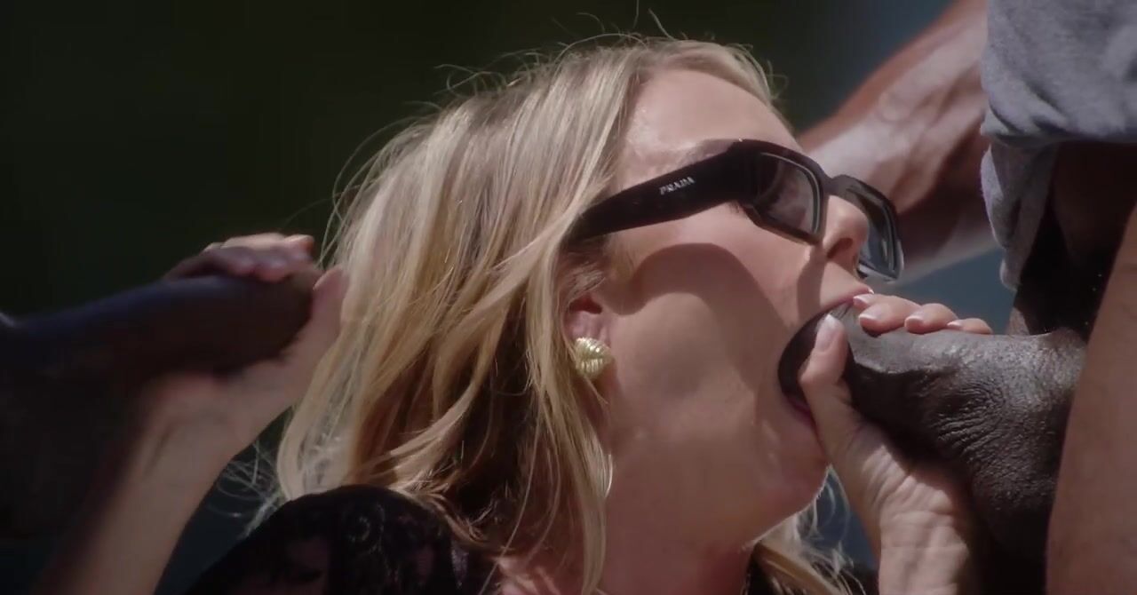«Стройная красотка соблазняет негров у бассейна, чтобы заняться с ними групповым сексом. Уже вскоре белокурая худышка ведет чернокожих ребят в спальню и там отдается им в обе дырочки. Бестия ещё и ротиком страстно работает, отсасывая болты ребят как следует. Далее эта цыпочка наслаждается половым актом и бурно кончает несколько раз. Негры отжарили её в киску и в попку, после чего накончали на лицо.»