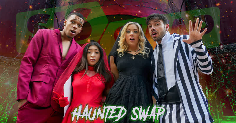 «Две девушки и два парня собрались на Хэллоуин, чтобы вызвать духов и рассказать страшные истории. Но призраки так к ним и не пришли, поэтому молодые ребята решили переместиться лучше в спальню, чтобы там заняться групповым сексом. Привлекательные девушки с удовольствием обменялись партнерами и получили удовольствие от такого полового акта. Ребята отжарили красавиц с маленькими сиськами и кончили им на лица.»