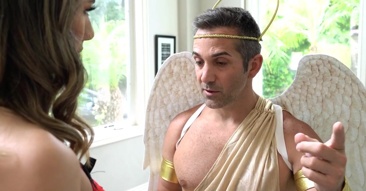 «У каждого человека на плечах сидят по ангелу и демону, только вот одному человеку не повезло, ведь его ангел и демон занимаются жарким сексом. Мужик ангел вылизывает пизденку красотки демону на кровати и засаживает свой хуй в её пизду. Он не смог устоять перед адски красивой и безумно развратной коллегой, которая соблазнила его на жаркую еблю. Эта цыпочка сделала отменный минет и отдалась в мокрую вагину.»