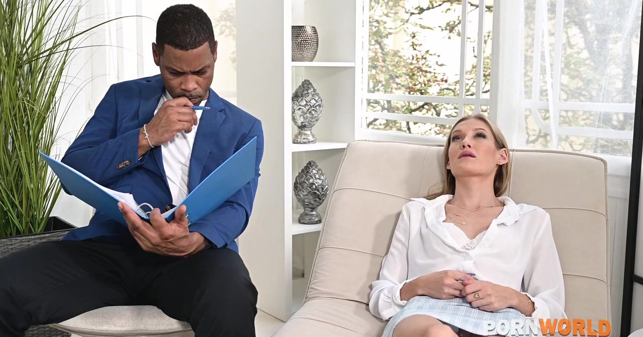 «У черного психолога есть немного сомнительная, но рабочая методика, с помощью которой он вылечивает депрессию. Негр советует белокурой худышке чаще себя ублажать, что та практически не делает. Психолог достает игрушки и просит девчонку мастурбировать перед ним, чтобы показать как она себя ублажает. А чтобы девчонка получила максимальный кайф, чернокожий мужик достает свой пенис и принимается её трахать в попку и пизду.»