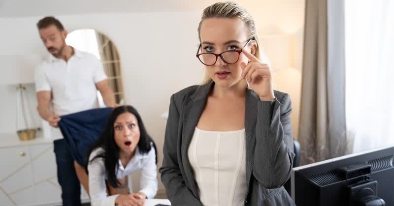 Оставила подчиненных в кабинете, а те занялись анальным сексом