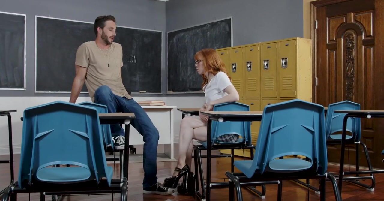 «Молодой учитель оставляет рыжую ботаншу в очках после занятий не для того, чтобы дополнительно с ней позаниматься. Ему очень нравится эта стройная крошка в короткой юбке и он хотел бы с ней заняться сексом. Примерная ученица оказывается совсем не скоромной девушкой, она набрасывается на преподавательский хуй и делает ему страстный минет, после которого отдается в мокрую пизду и получает нереальный кайф.»