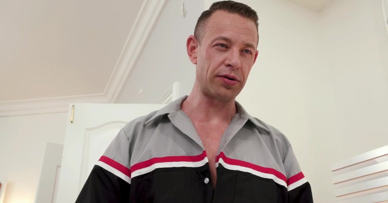 «Красивой блондинке безумно понравился электрик, который был у неё в прошлый раз. Сегодня она его к себе тоже вызывает, но теперь по совершенно другой причине. Белокурой крошке захотелось заняться анальным сексом и она решила, что рукастый мужик сможет её удовлетворить. Самец не стал отказывать худышке в короткой юбке, он первым же делом вылизал её бритую киску, а потом довольно нежно трахнуть крошку.»