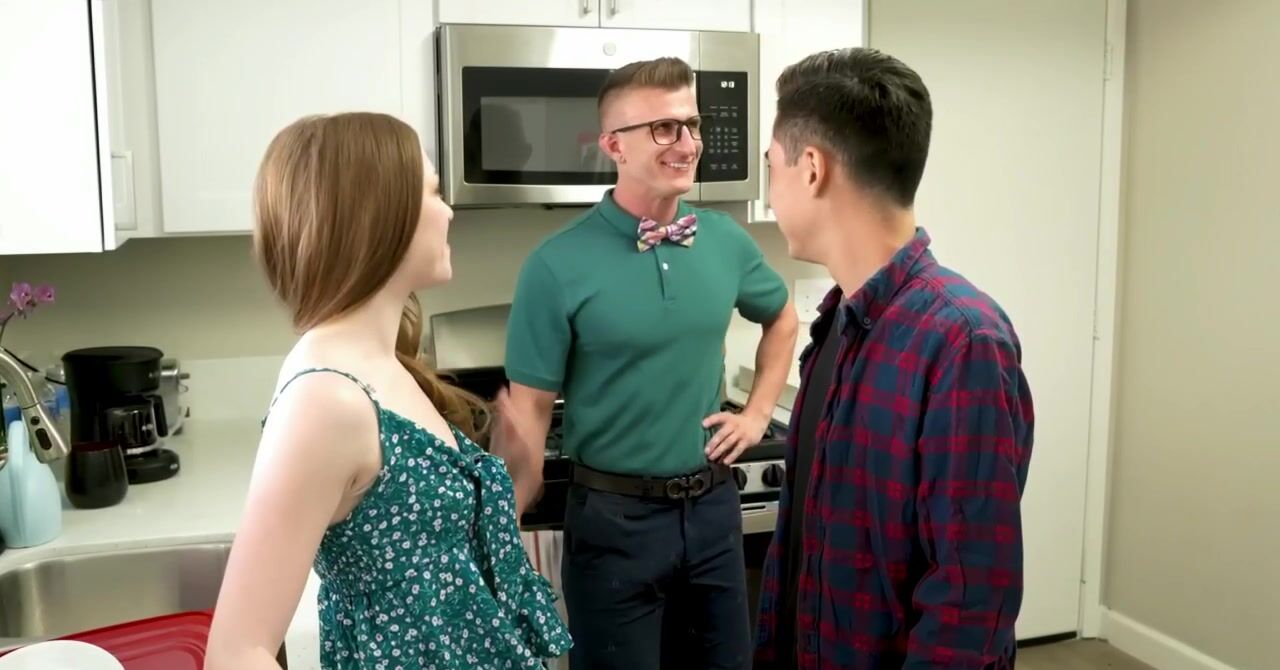 Парень вместе с лучшим другом трахает худую сводную сестру