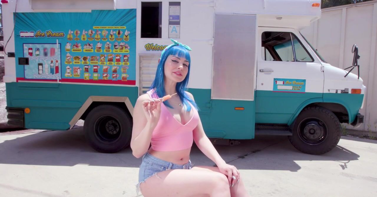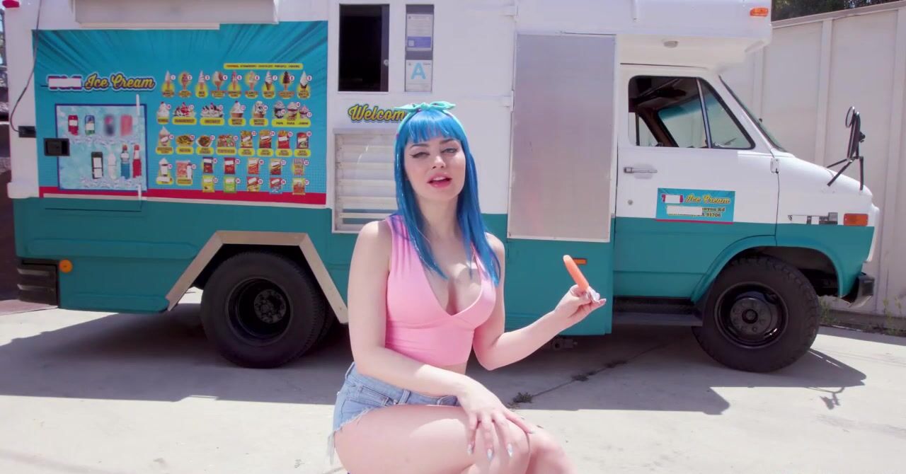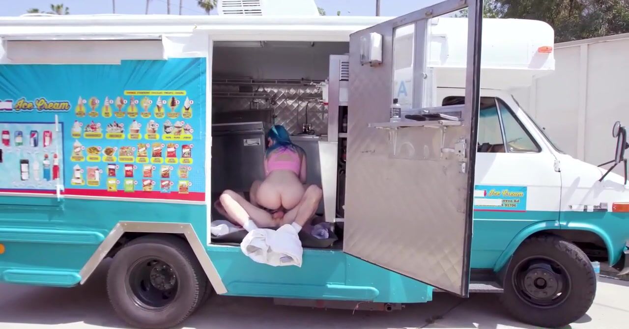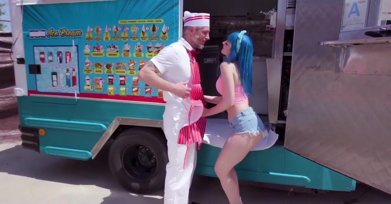 «Любительница сладкого перепробовала уже все виды мороженого. А как насчет члена мороженщика, он ведь тоже вкусный? Телка с синими волосами с радостью попробует и его тоже, жаркая цыпочка стягивает с него штаны и принимается полировать хуй мужика возле фургона. Остановится невозможно, ей хочется большего, поэтому развратница отдается ему в мокрую киску. А после пизденки хер становится ещё вкуснее, сперма, кстати, тоже очень вкусная.»
