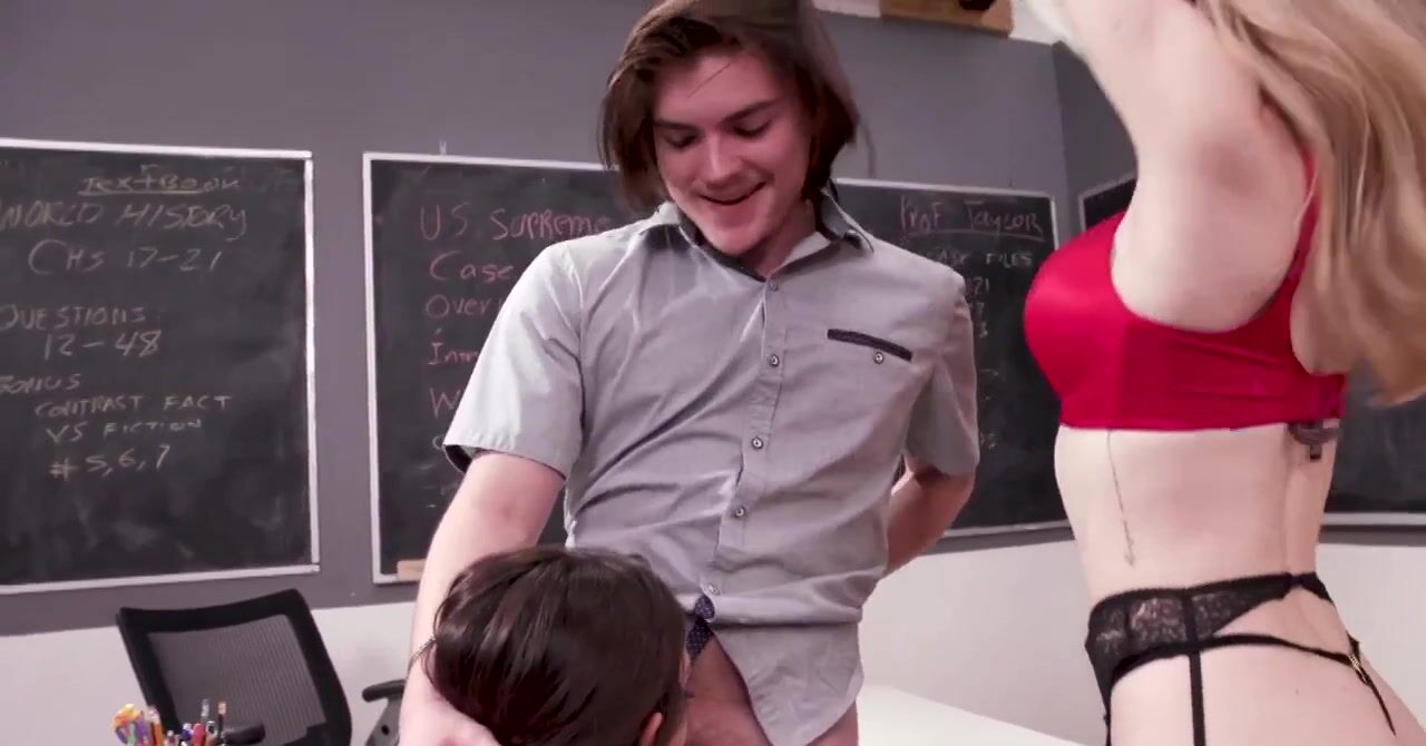 «Хочет ли молодая парочка научиться хорошо заниматься сексом? Глупый вопрос, ответ и так очевиден. Тогда пускай они остаются после занятий, белокурая преподавательница их всему научит, эта жаркая училка та ещё развратница. Парень с девушкой не пожалели, ебля была действительно крутой. Зрелая блондинка научила молодую брюнетку не только сосать хуй, но ещё и лизать пизду, ведь никогда не знаешь какие знания тебе пригодятся в жизни.»