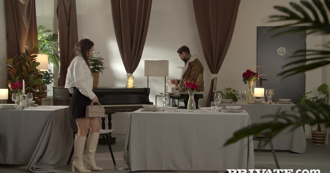 «Красотка давно не была на свидании и поэтому так сильно возбуждается, а ведь она просто хотела поужинать и пообщаться с парнем, чтобы лучше его узнать. Но возбуждение стало таким сильным, что привлекательная телка отдалась чуваку прямо на столе ещё перед ужином. Татуированная ухажер взялся вылизывать её бритую киску, а потом жарко трахнул в мокрую писю. Девка ещё и глубокий минет ему сделала, а так же позволила кончить на личико.»