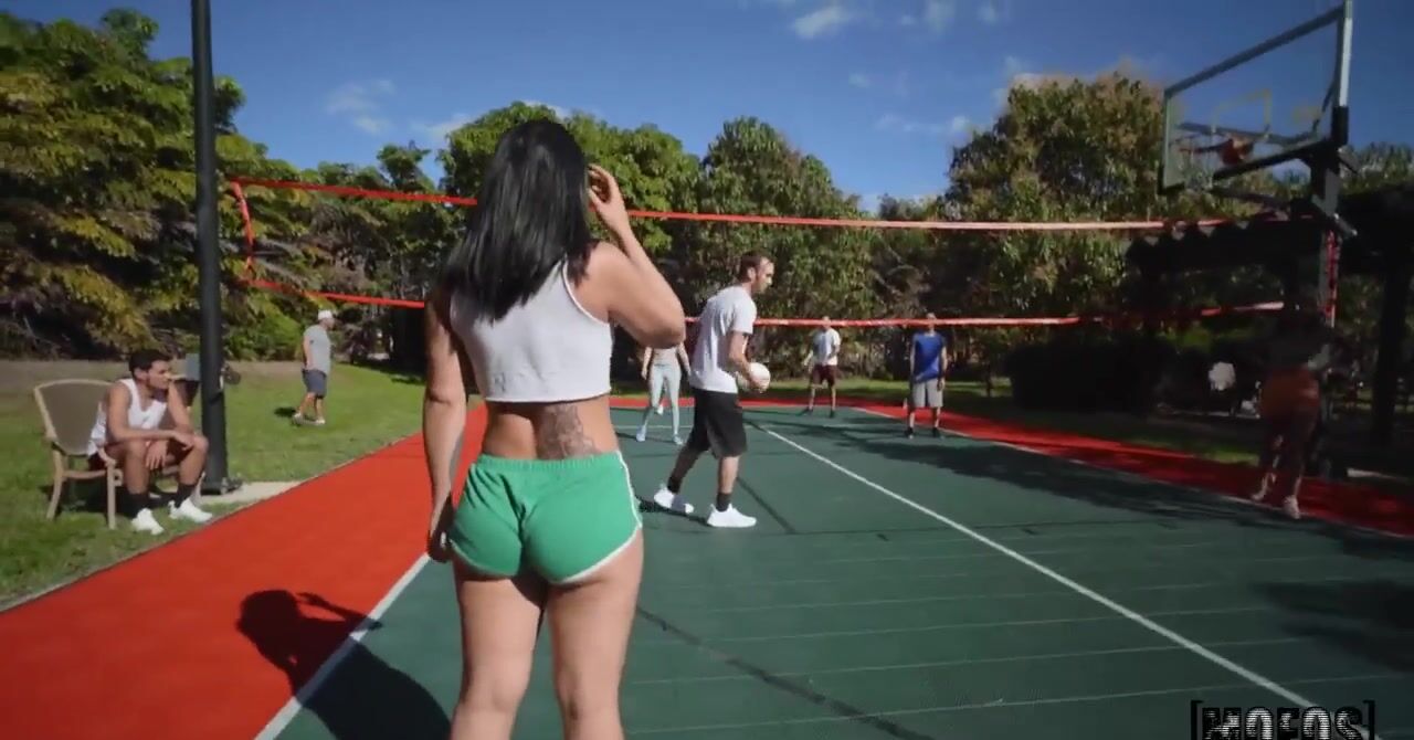 «Милая брюнетка Anais Amore играет в волейбол и заигрывает с парнем. Как только он становится на поле за ней, черноволосая проказница тут же начинает показывать упругую попку и даже красивые сиськи с пирсингом сосков. В итоге девка отводит его в сторону и принимается делать глубокий минет, который плавно перерастает в секс. Пока остальные друзья продолжали играть, эта парочка развлеклась и ебалась.»