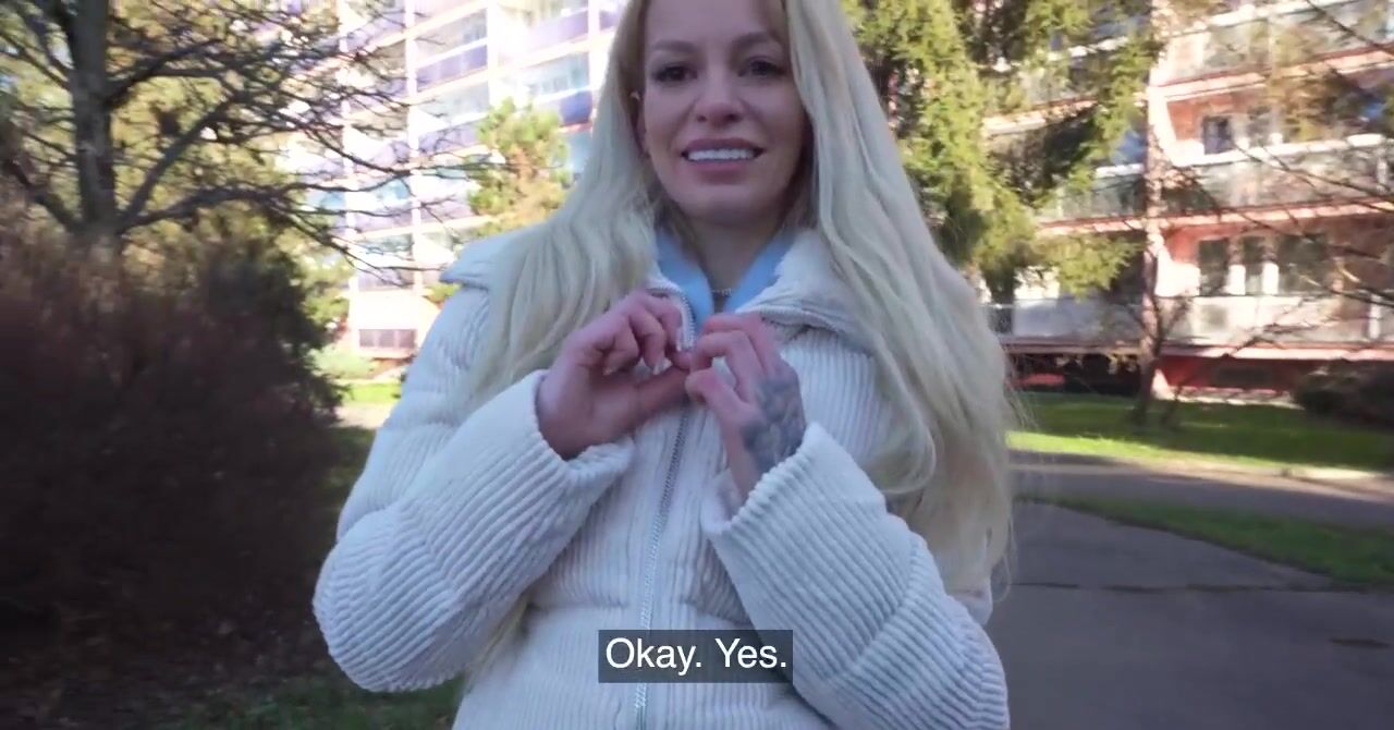 «Если хочется посмотреть на упругие сиськи блондинки, то придется за это щедро заплатить. Но мужик готов выложить приличную сумму, ему совсем не жалко. Белокурая цыпочка получает деньги и показывает грудки прямо на улице. А когда сумма увеличивается в несколько раз, девчонка опускается на колени и принимается делать глубокий минет. Она сосет толстый хер и отдается в бритую пизду, разрешая в неё кончить.»