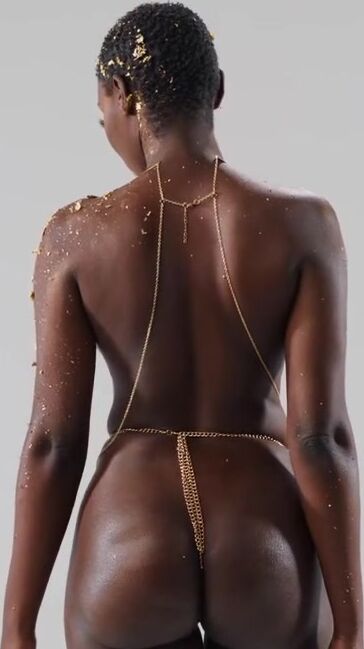 «Лысая негритянка Zaawaadi в золотых цепочках и золотой краской на теле соблазняет худощавого европейца с большим членом на межрасовый секс. Африканская красотка оказывается нереально страстной, в ней бурлит дикая кровь, так что проказница дарит белому мужику нереальный кайф. Она не только трахается жаркой, но ещё и сосет прекрасно, девка прекрасно управляется с толстым членом, позволяя кончить на лицо.»