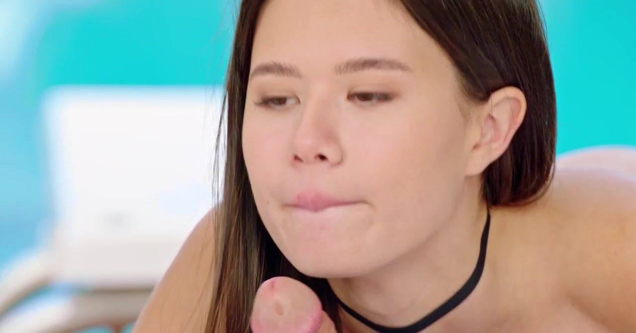 «Худенькая спортсменка Evelin Elle занимается плаванием, но сегодня ей не хочется тренироваться, миниатюрная девчонка решает лучше заняться сексом у бассейна. Стройная крошка с маленькими сиськами снимает купальник и быстро возбужадет парня, которого заводит её миниатюрное тело. Брюнетка умеет сосать и трахаться. Она сперва как следует отсасывает член бойфренда, а затем наслаждается вагинальным проникновением и кончает.»