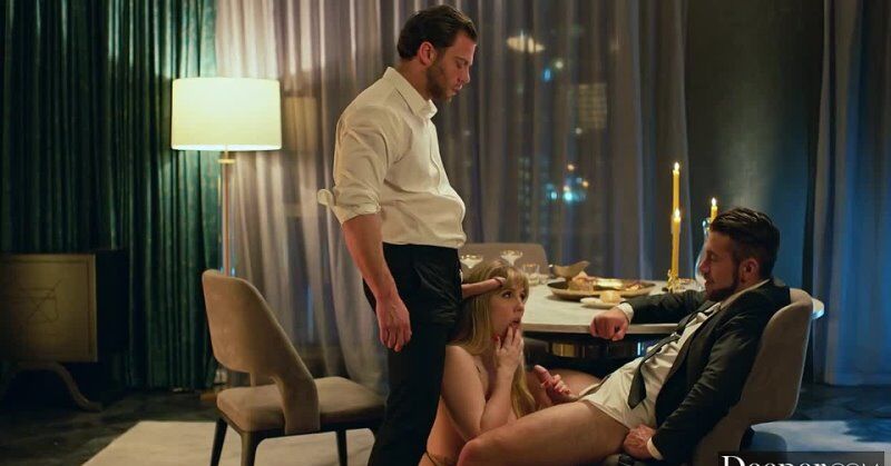 «Красотка Lena Paul встречалась в двумя парнями параллельно, пока они не узнали друг о друге. С этим ничего уже не сделаешь, раз тайна открылась, то нужно воспользоваться ситуацией. Белокурая бестия с большими натуральными сиськами устраивает групповое свидание с двумя ухажерами, а потом предлагает МЖМ. Мужики её отжарили по полной, они быстро помирились с развратницей и поимели её в пизду и ротик.»