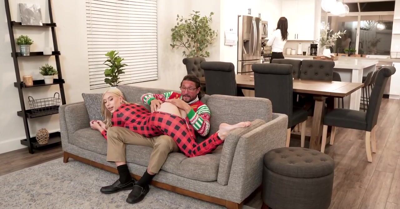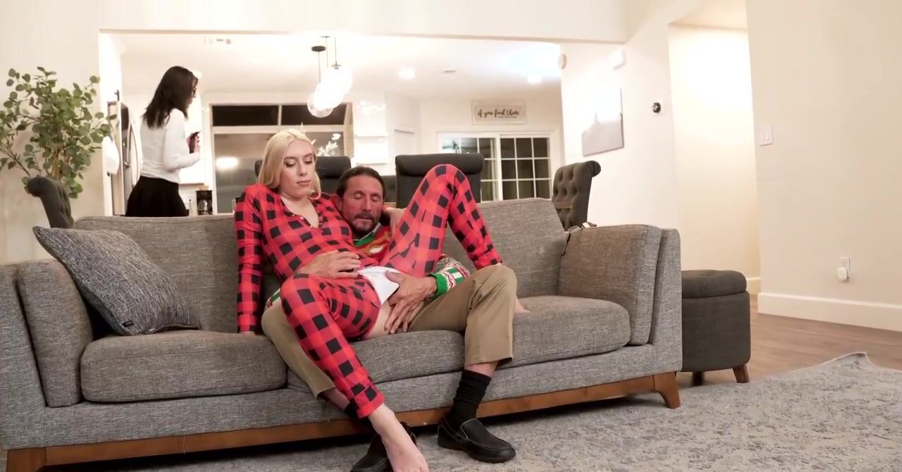 «Мачеха увлеченно наряжает елку, в то время как красивая падчерица в пижаме решает удовлетворить отчима. Эта белокурая девчонка расстегивает свою пижаму на попке и показывает упругую задницу, возбуждая зрелого мужика. Стройная крошка с красивыми сиськами начинает с минета, она отменно сосет хер мужика и наслаждается вагинальным сексом. Мачеха же как будто не замечает, что муж трахает падчерицу и кончает в неё.»