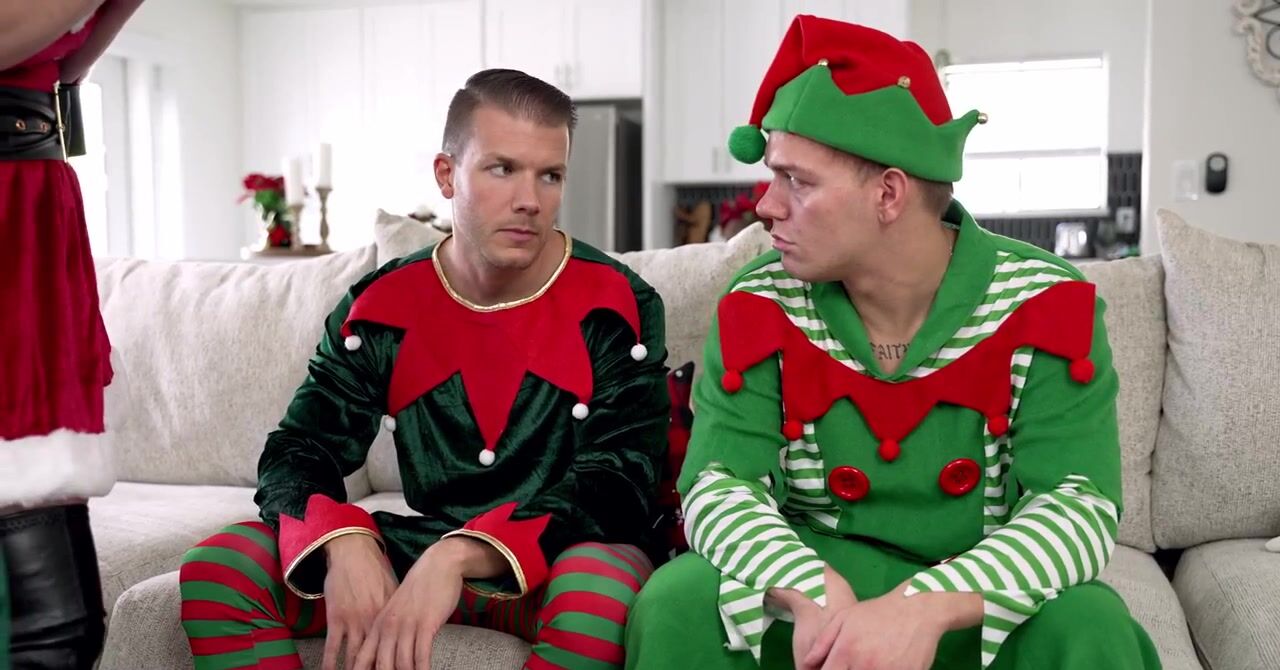 «Пасынки на рождество предлагают мачехам заняться кое-чем особенным, тем, что им наверняка понравится. Парни имели в виду групповой секс. Зрелой блондинке с большими натуральными сиськами и её черноволосой подруге с силиконовыми дойками идея понравилась, они накинулись на крепкие фаллосы и принялись их как следует сосать, доставляя ребятам удовольствие. А после минета мамочки уже отдались в бритые пизденки на диване.»