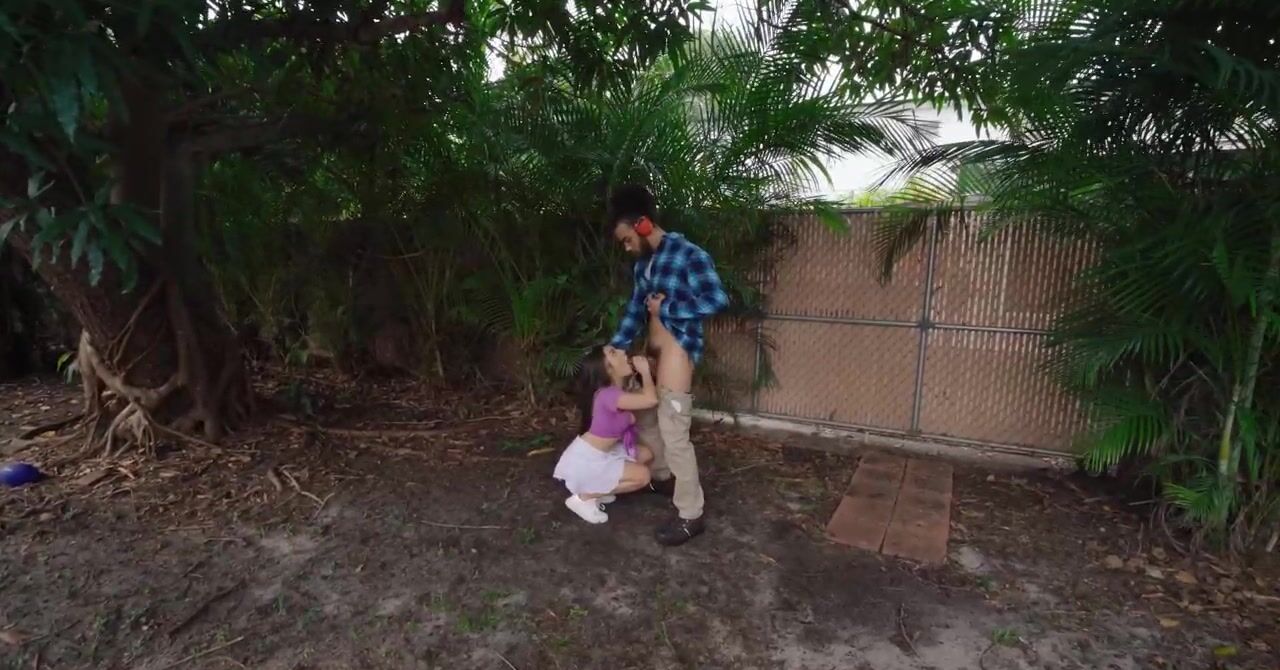 «Шаловливая внучка приезжает к дедушке в гости и втрескивается по уши в его чернокожего садовника. Девушка надеется, что в штанах этого черного парня скрывается большой член. Она намерена это проверить и когда дед не видит, игривая крошка соблазняет парня на интим и берется смачно отсасывать его крепкий член. На этом она не останавливается, девка отдается негру в киску во дворе и кончает от межрасовой ебли.»