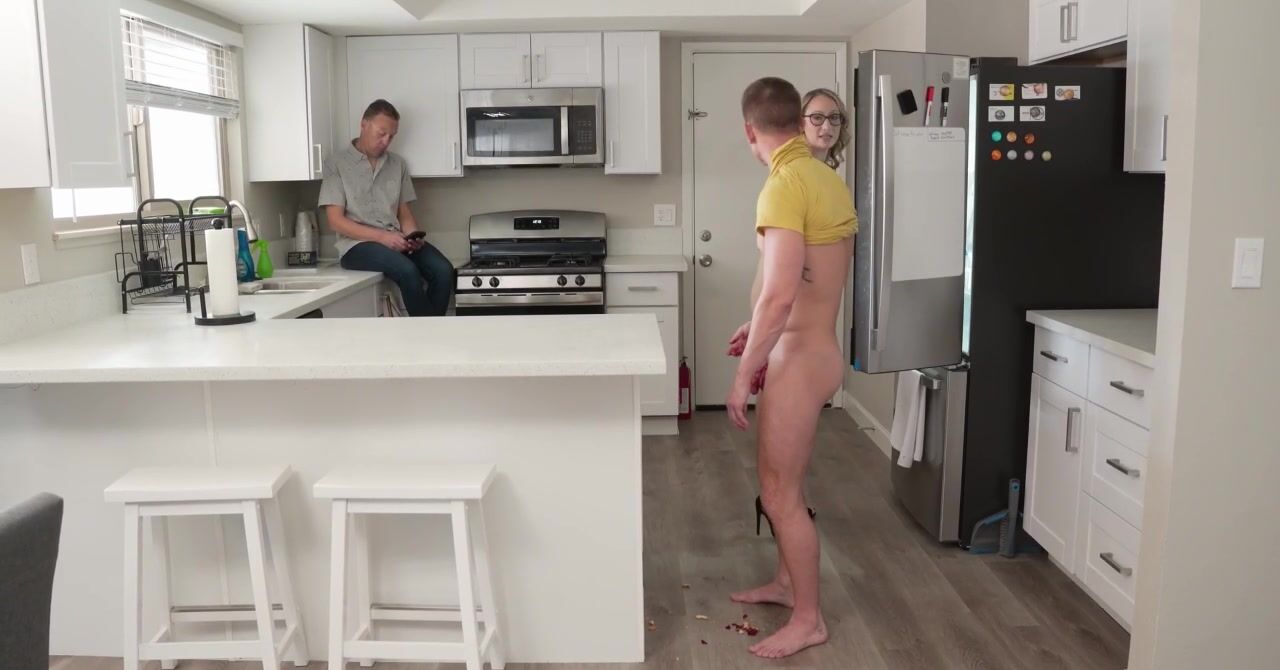 «Посмотрев "Американский пирог", парень решил повторить сексуальный опыт главного герой и тоже трахнул пирог на кухне. За этим занятием его вскоре застукала белокурая мачеха, которая решила лучше заняться сексом с пасынком, чтобы тот перестал трахать еду. Она, не обращая внимание на мужа, который был на кухне, сделала молодчику смачный минет и отдалась ему в пизденку, получив от ебли удовольствие сама же.»