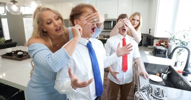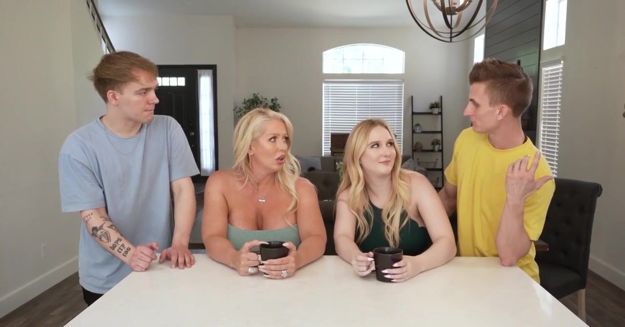 «Парни сделали приятное мачехам и сами приготовили прекрасный ужин. Ну а после еды белокурые милфы уже захотели чтобы их ещё и выебали. Пришлось ребятам воплощать в реальность и эти желания проказниц. Они переместились на диван, где мамочки взялись смачно отсасывать члены ребят, а потом отдались в бритые пизденки. Молодчики отжарили их как следует и спустили сперму на бритые щелки. Кончили мачехи по несколько раз.»