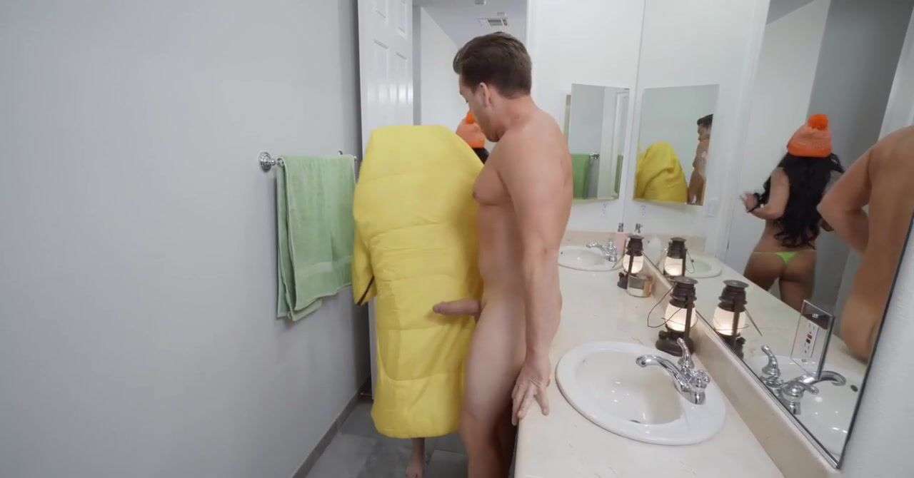 «Черноволосой развратные немного надоедают лесбийские игры с грудастой блондинкой. Она видит как приятель принимает душ и засматривается на его толстый хуй. Брюнетка соблазняет молодчика на интим и принимается смачно сосать его фаллос, после чего отдается в пизду. Вскоре она убеждает и белокурую девчонку попробовать ЖМЖ. Теперь цыпочки вдвоем насладились крепким хуем, вылизывая пизденки в процессе.»