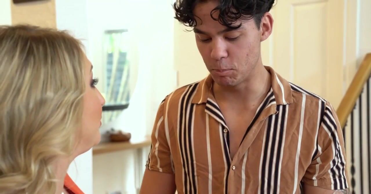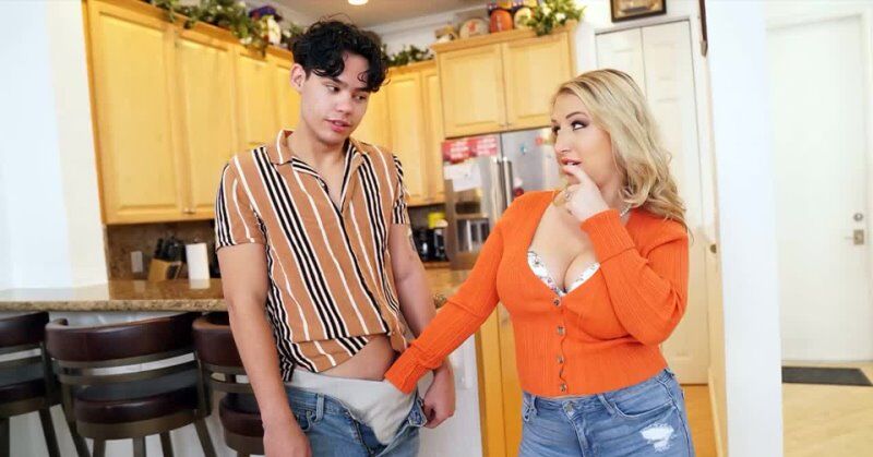 «Белокурая мачеха с большими натуральными сиськами не соблазнила бы пасынка на секс, если бы муж её регулярно и страстно трахал. Но супруг её не ебет, вот опытная блондинка и решает воспользоваться молодым хуем. Она берется страстно отсасывать пенис молодчика и отдается ему в киску, которая становится очень мокрой от возбуждения. Опытная развратница просит молодчика закончить секс камшотом на лицо.»