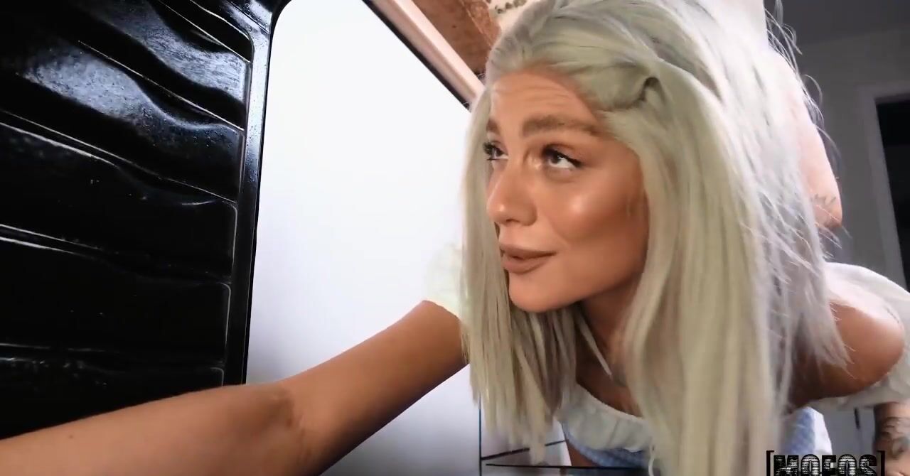 «Парень знает, что нужно делать, когда его привлекательная девушка застревает в духовке. Русская худышка собиралась заняться готовкой, но что-то пошло не так. Она стояла раком на кухне и её короткая юбка поднялась, так что упругая попка сексуально оголилась. Бойфренд не стал тянуть время, он отодвинул трусики девки в сторону и вставил член в её пизду, принимаясь активно трахать проказницу. Худышка ещё и минет ему сделала.»