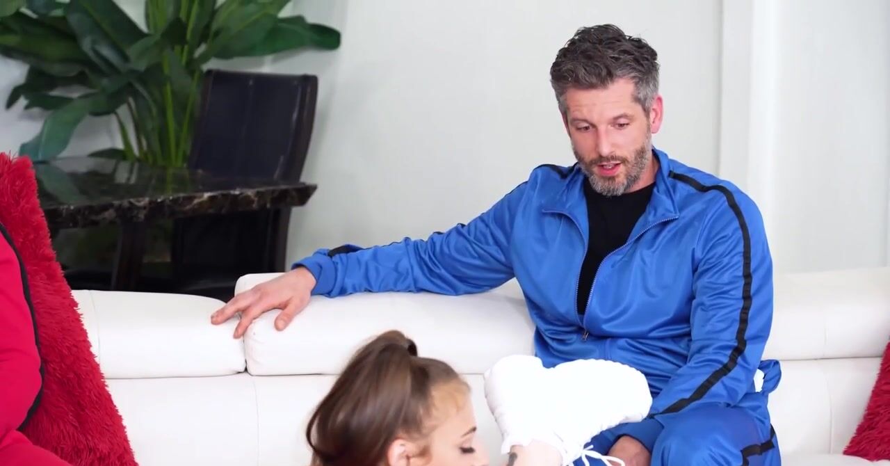 «Две привлекательные падчерицы с сочными попками пытаются приобщить отчимов к спорту, но это довольно не просто. Изначально девушки надевают спортивные костюмы и показывают мужикам какие упражнения стоит делать, но папочки слишком уж не спортивные. Поэтому хитрые девчонки решают поступить по-другому, мужчин они теперь соблазняют на жаркую еблю. Секс ведь тоже можно назвать спортом. Самцам пришлось постараться, чтобы удовлетворить ненасытных падчериц.»