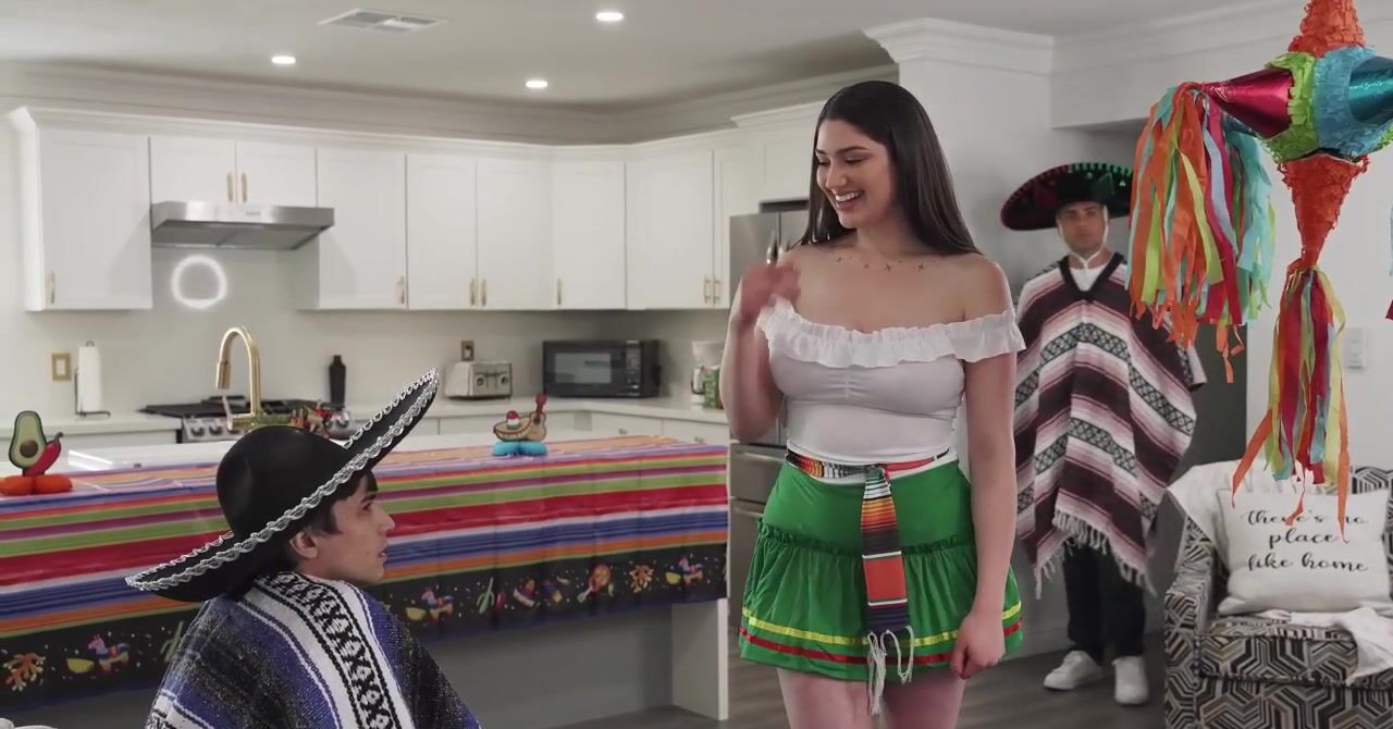 Грудастая Alyx Star на празднике дает двум сводным братьям