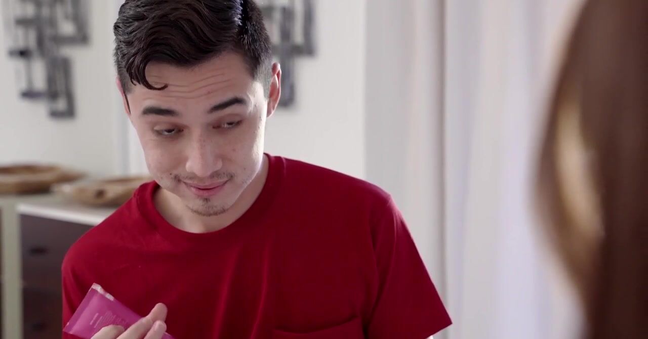 «Сочная мачеха в сексуальном белье игриво соблазняет пасынка на интим. Эта опытная бестия имеет полноватое тело, но от этого не теряет сексуальность. Жаркая мамочка показывает большие натуральные сиськи и большую же жопу на кровати, вставая раком и прогибая спину. Пасынок возбуждается от такого зрелища и загоняет свой болт в её пизденку. Он принимается трахать мамочку, а кончает ей в рот. Сперму она, кстати, выплевывает на свои сиськи.»