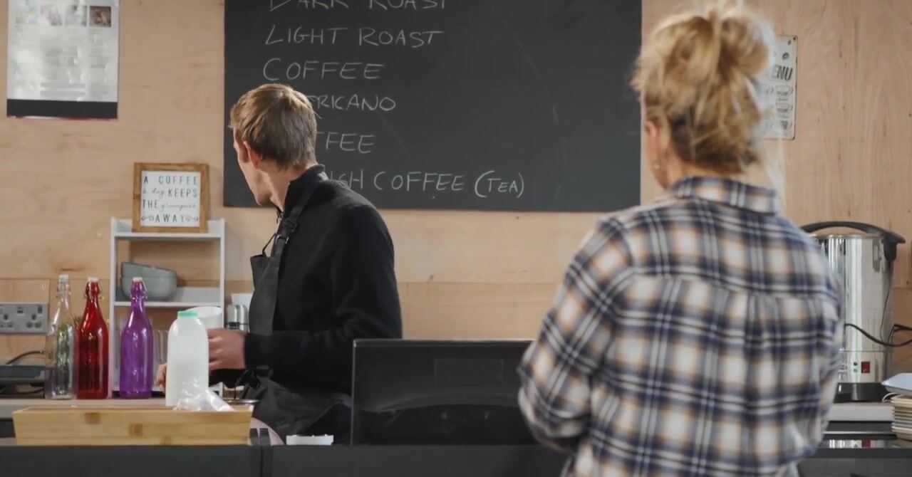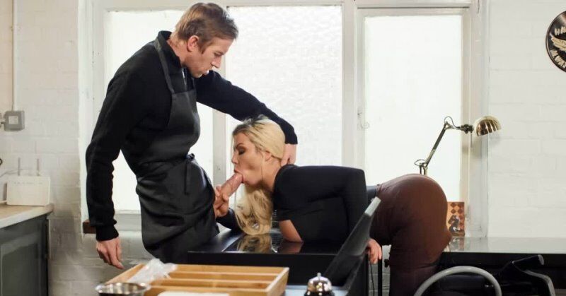 «Зрелая блондинка Barbie Sins заходит в кофейню с утра, только кофе она не хочет, начинать день она любит из секса. Эта привлекательная бестия узнает о размере члена баристы и возбуждается, ведь тот обладает солидным хуем, которым она намерена воспользоваться. Развратница не переживает, что сейчас кто-то ещё заглянет в кофейню, она принимается смачно отсасывать крепкий хер и отдается в мокрую пизду.»