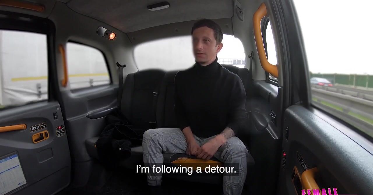 «Грудастая таксистка с миловидным лицом разговорилась с привлекательным пассажиром и решила взять перерыв на секс. Она принялась делать ему минет на заднем сидении, а затем отдалась в мокрую пизду, получая удовольствие. Развратница насладилась половым актом по полной, парень её как следует поимел и подарил несколько оргазмов. Удовлетворенная брюнетка попросила молодчика наполнить её письку спермой.»