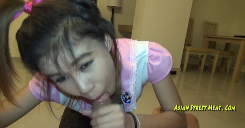 «Милая азиатка 18 лет подалась в проститутки и теперь трахается за деньги. Если честно, то ей самой всё очень даже нравится. Эта привлекательная худышка с маленькими сиськами предпочитает ебаться с иностранцами и не только отдается в бритую киску, но ещё и отсасывает член. Худышка удовлетворяет мужика по полной программе, особенно сильно ему нравится узенькая щелка шлюхи, в которую он может даже кончить.»