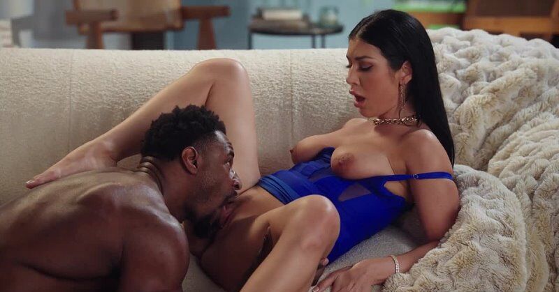 «Белая красотка в синем платье приезжает к негру в гости, чтобы заняться с ним межрасовым сексом. Эта привлекательная текла в большими висячими сиськами моментально его возбуждает своим телом и расставляет ноги в стороны, чтобы черный мужик первым делом вылизал её щелку. А уже потом брюнетка может взять хер в ротик и сделать смачный минет. Пара занялась шикарным межрасовым сексом с окончанием на личико девки.»